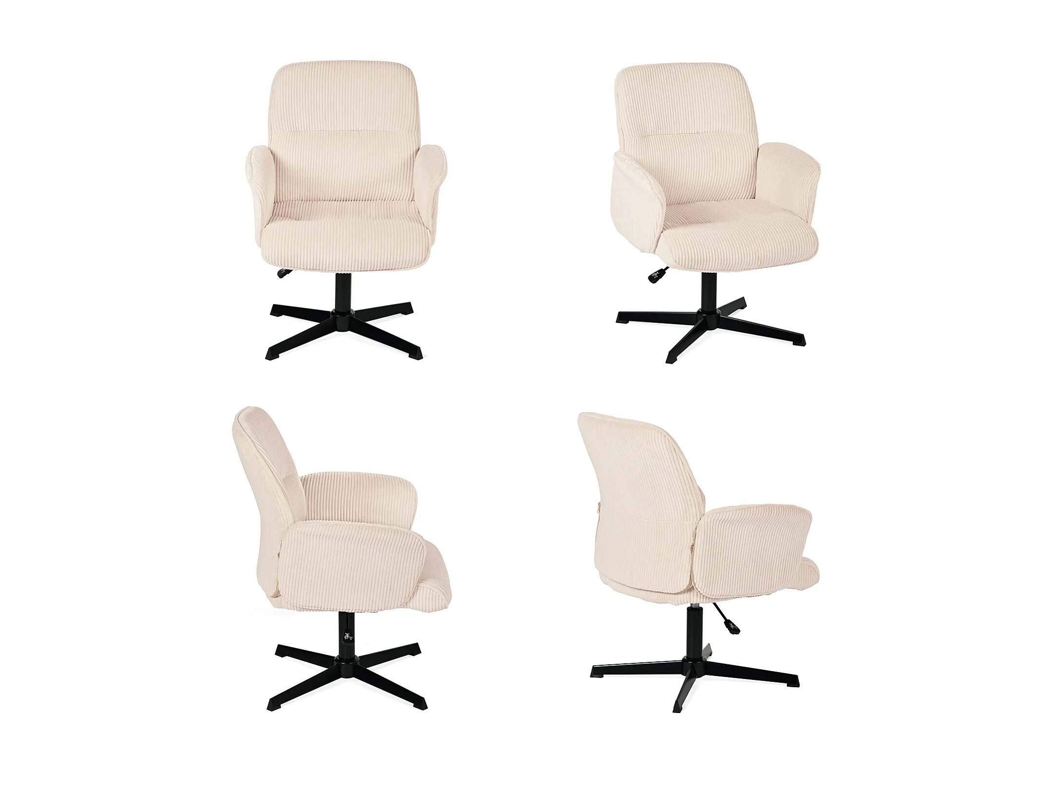 Fauteuil de bureau pivotant réglable en velours côtelé avec accoudoirs et base en métal noir, THOMASINACORDO