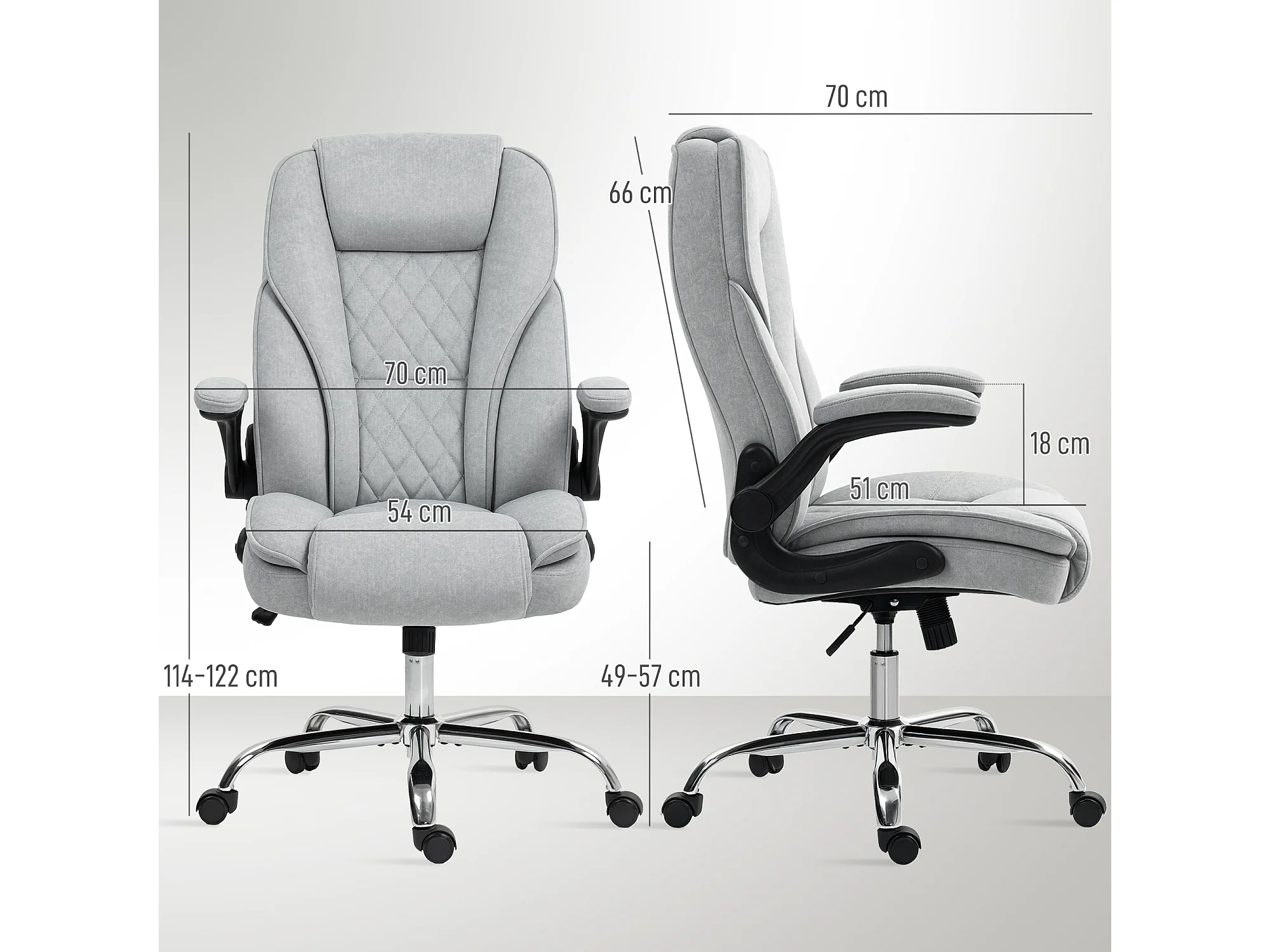 Fauteuil de bureau manager design accoudoirs rembourrés acier chromé tissu toucher lin gris clair