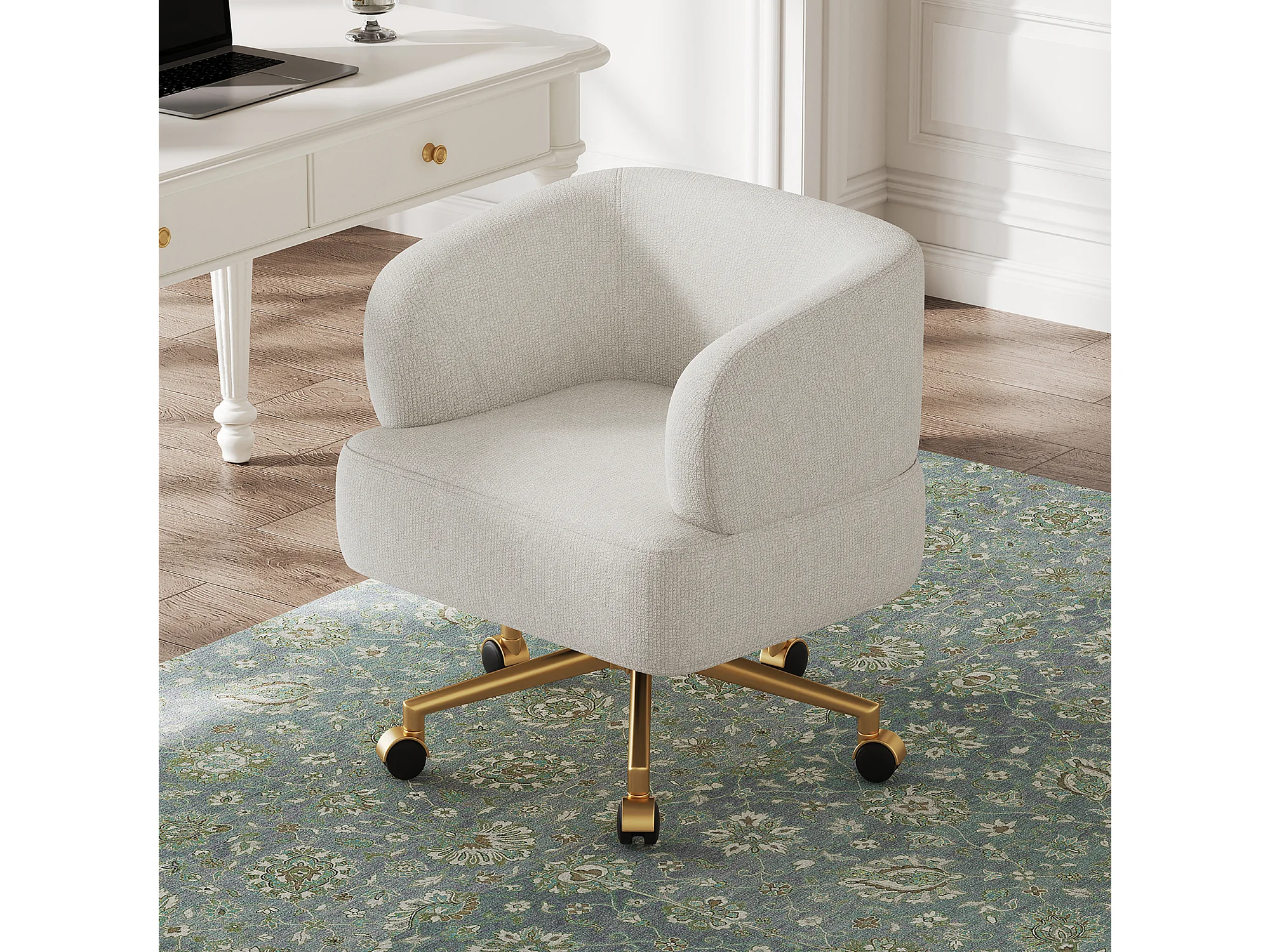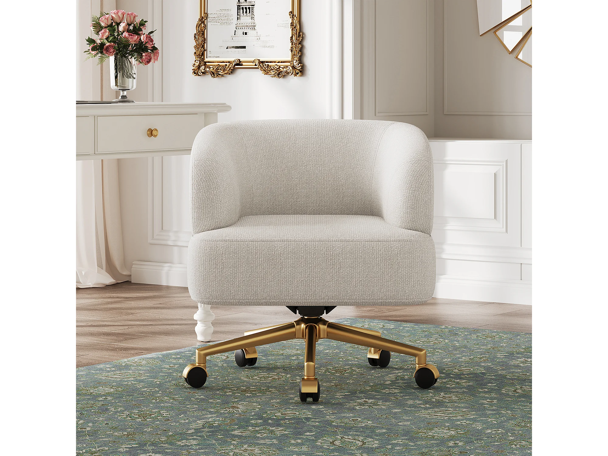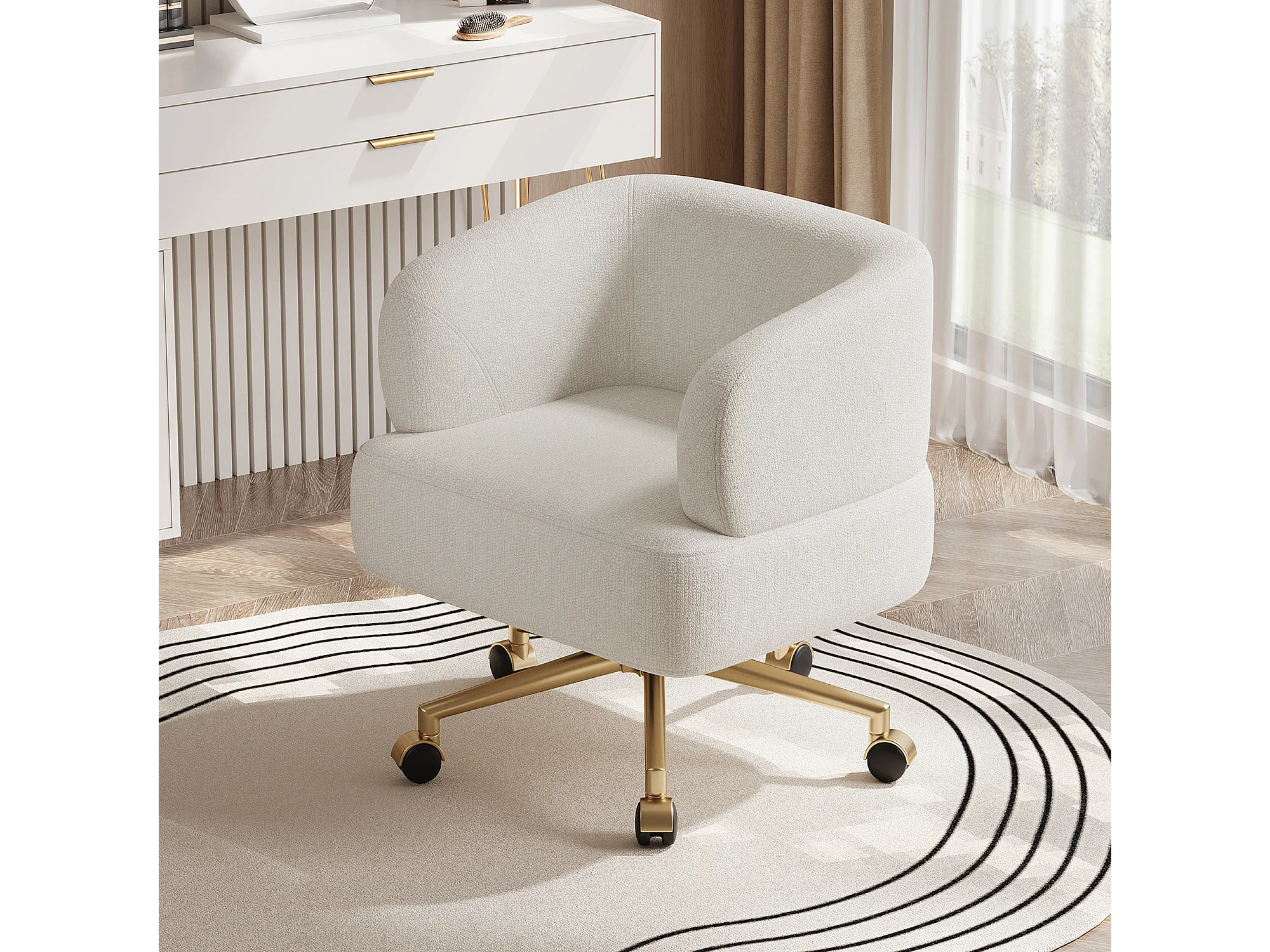 Fauteuil de détente pivotant - 71 x 60 x 71 cm - avec 5 roulettes - rotation à 360°- chenille - beige