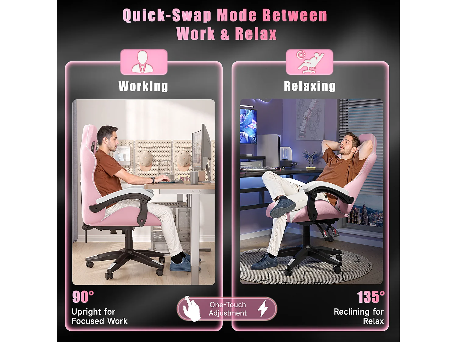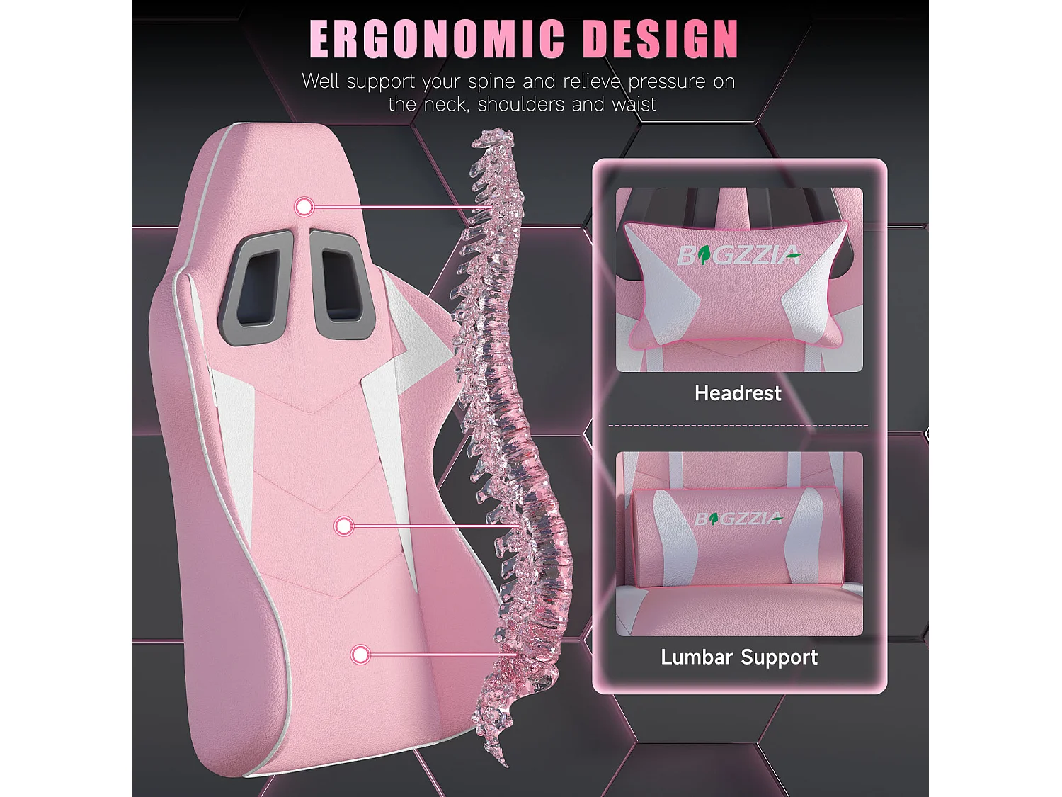 Fauteuil de gaming inclinable à dossier haut en cuir PU, avec appui-tête et soutien lombaire