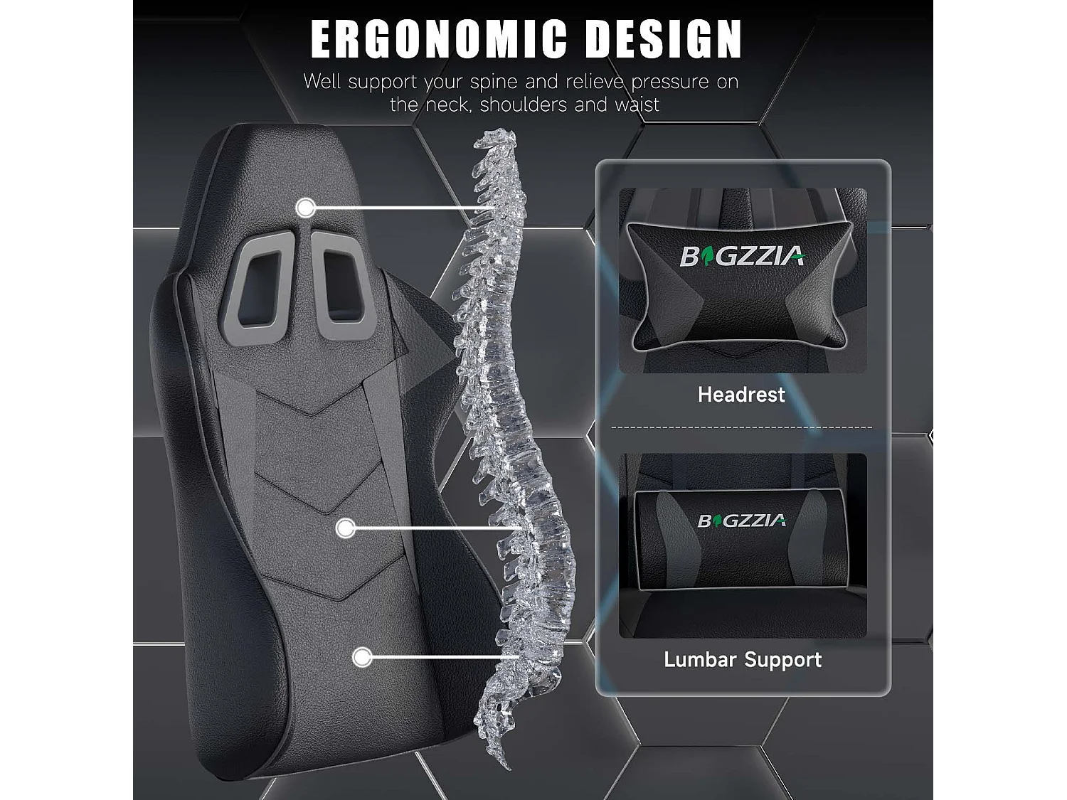 Fauteuil de gaming inclinable à dossier haut en cuir PU, avec appui-tête et soutien lombaire