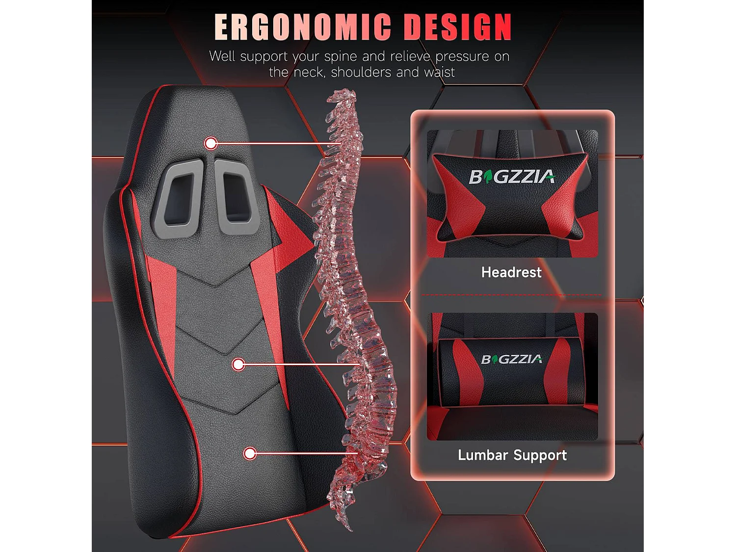 Fauteuil de gaming inclinable à dossier haut en cuir PU, avec appui-tête et soutien lombaire