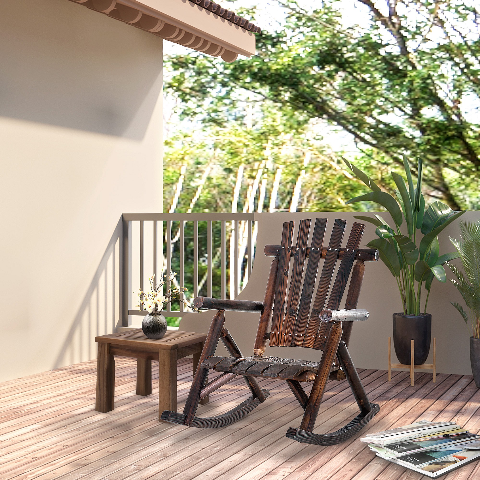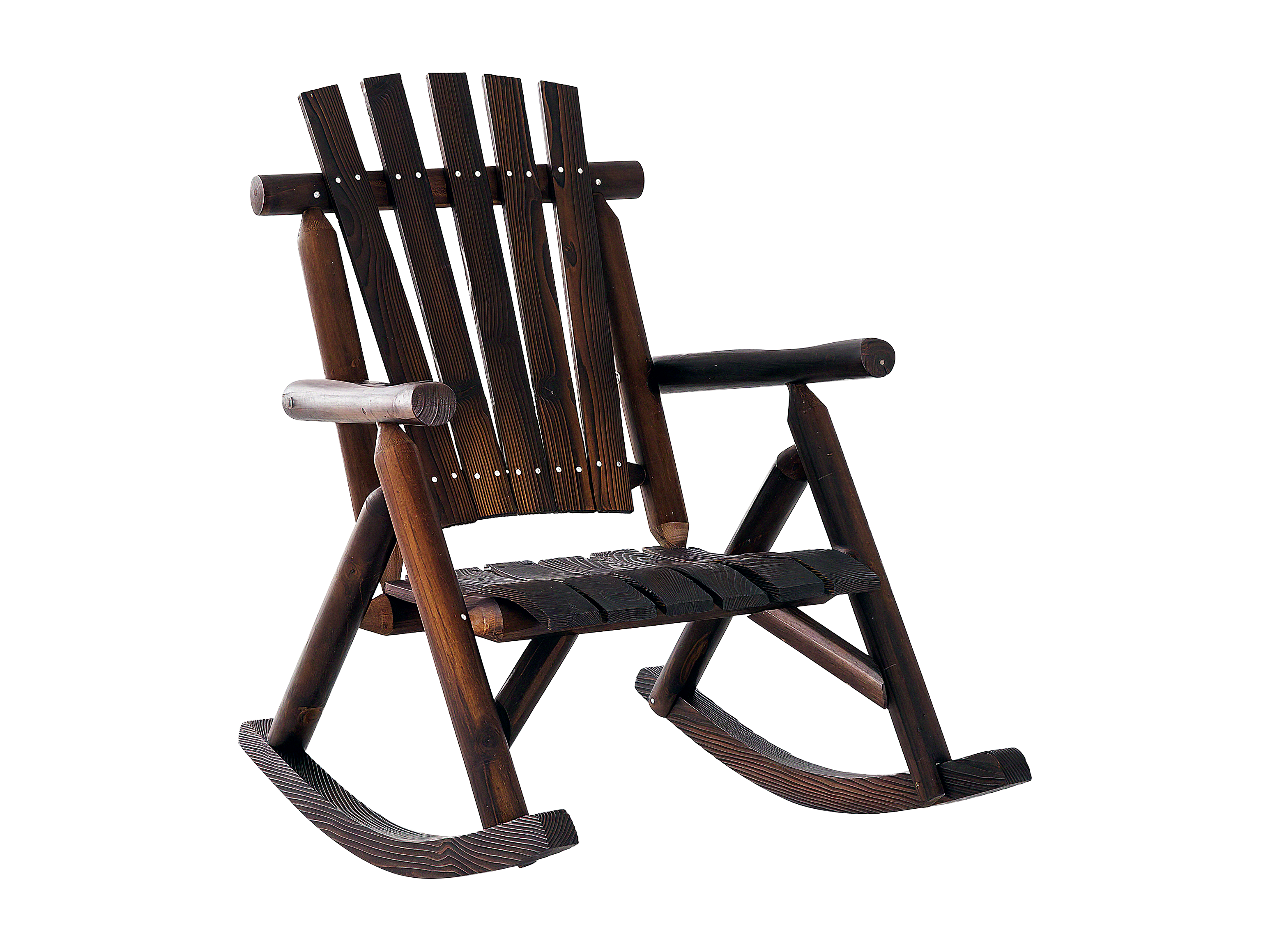 Fauteuil de jardin Adirondack à bascule rocking chair style rustique chic bois sapin traité carbonisation