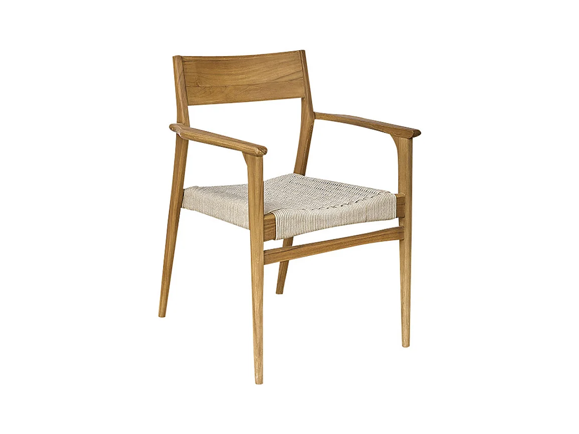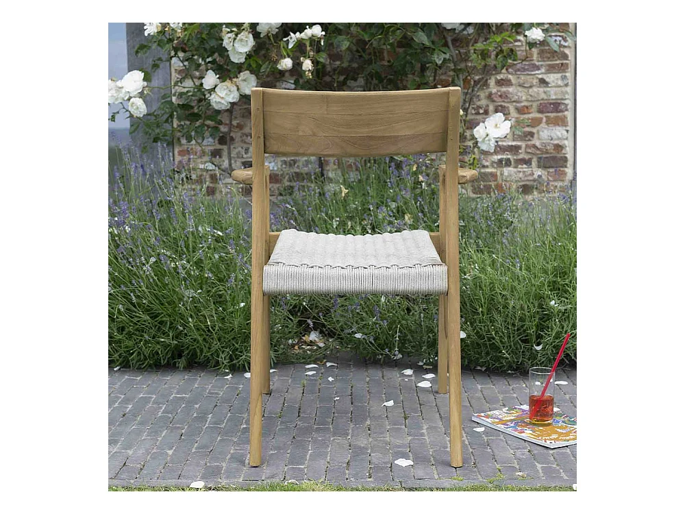 Fauteuil de jardin en teck massif et cordage Beige CALVI