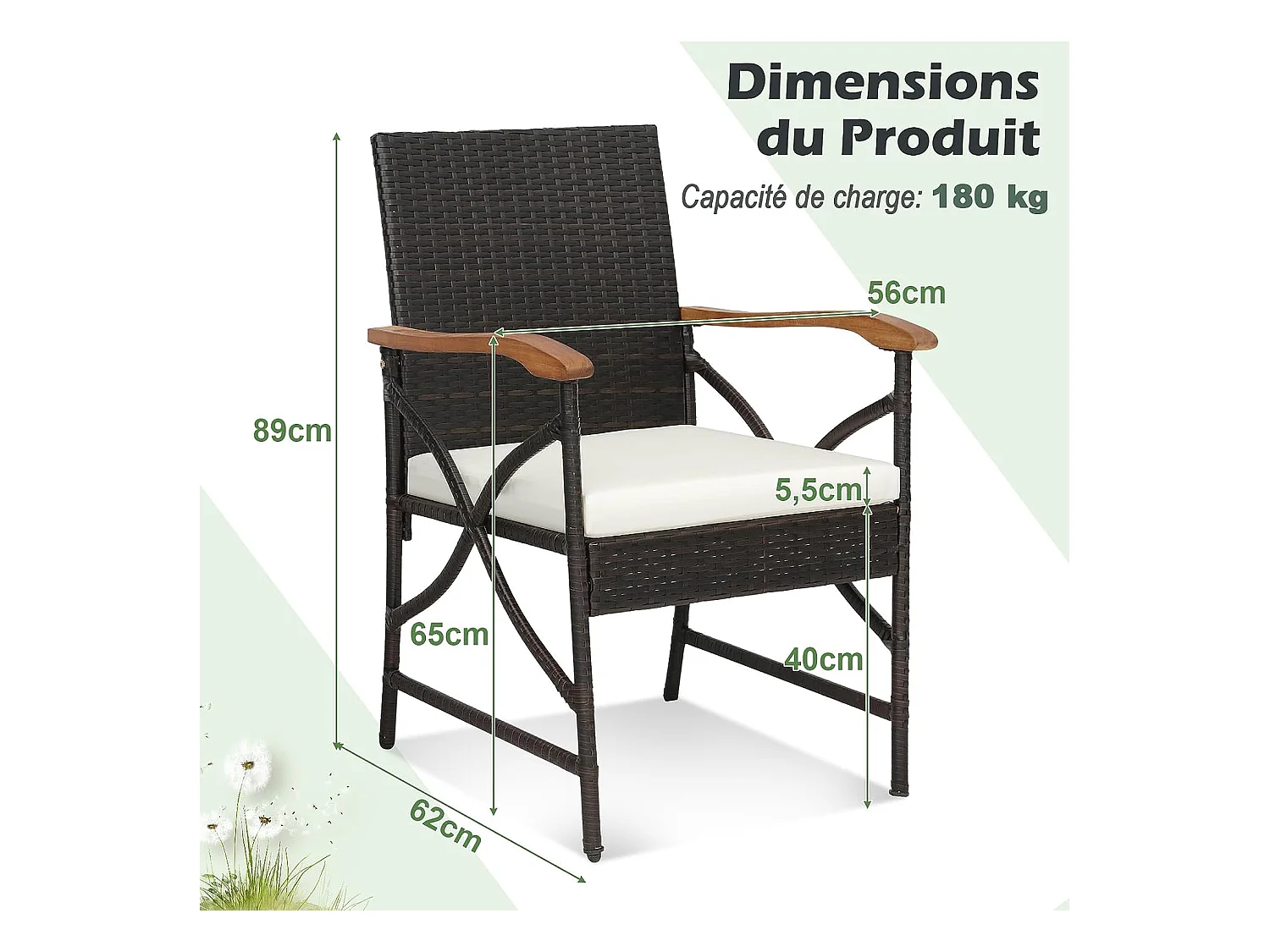 Fauteuil de Jardin Éxterieur Lot de 2 avec Coussins, Hauteur d'Assise 40 cm