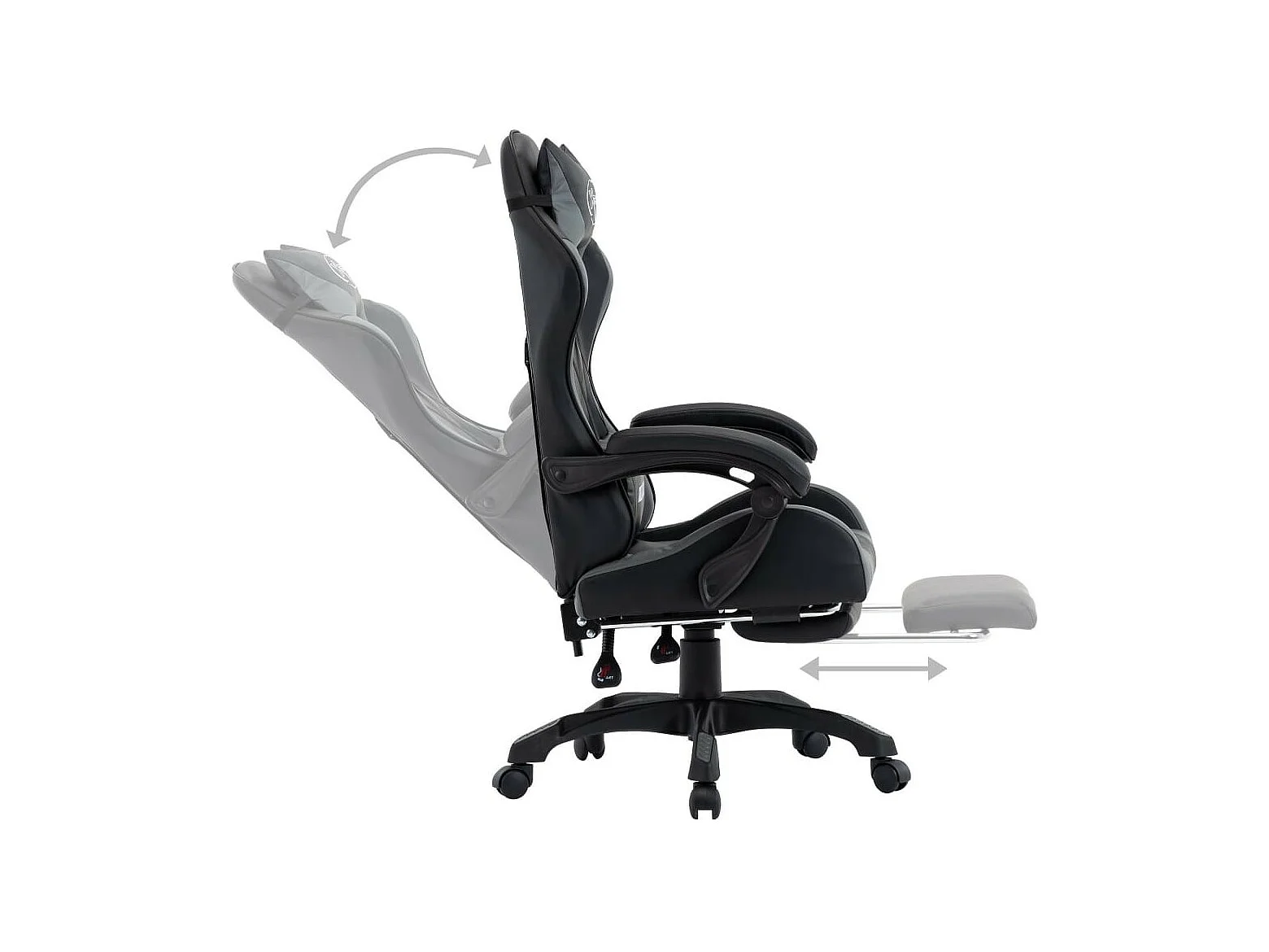 Fauteuil de jeux vidéo avec repose-pied Gris et noir Similicuir