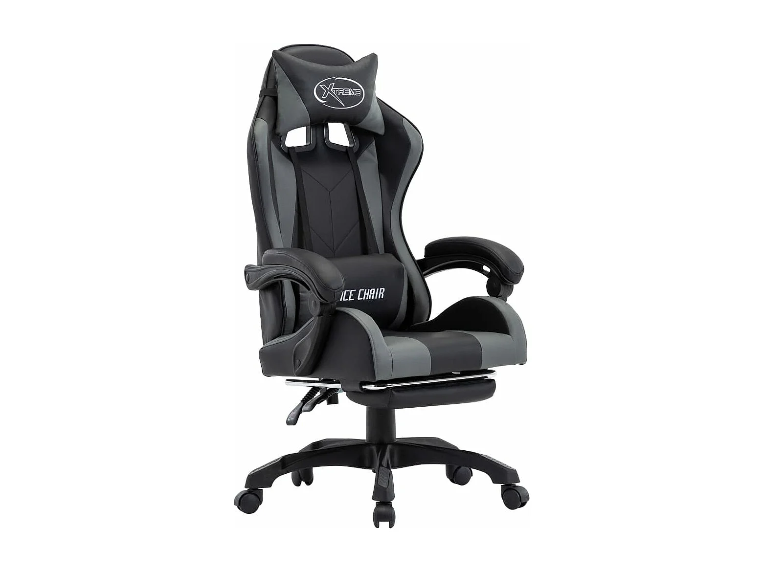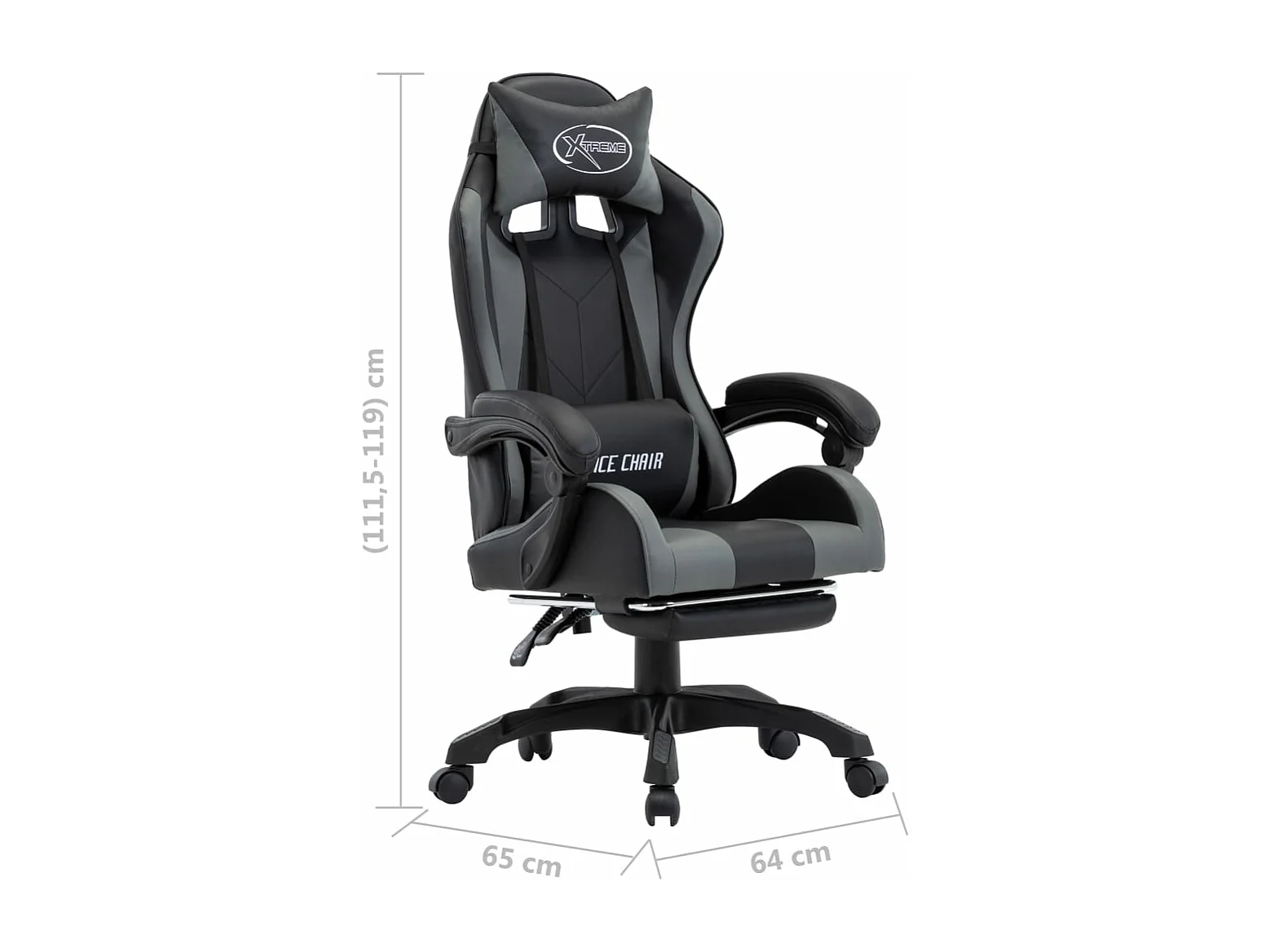 Fauteuil de jeux vidéo avec repose-pied Gris et noir Similicuir