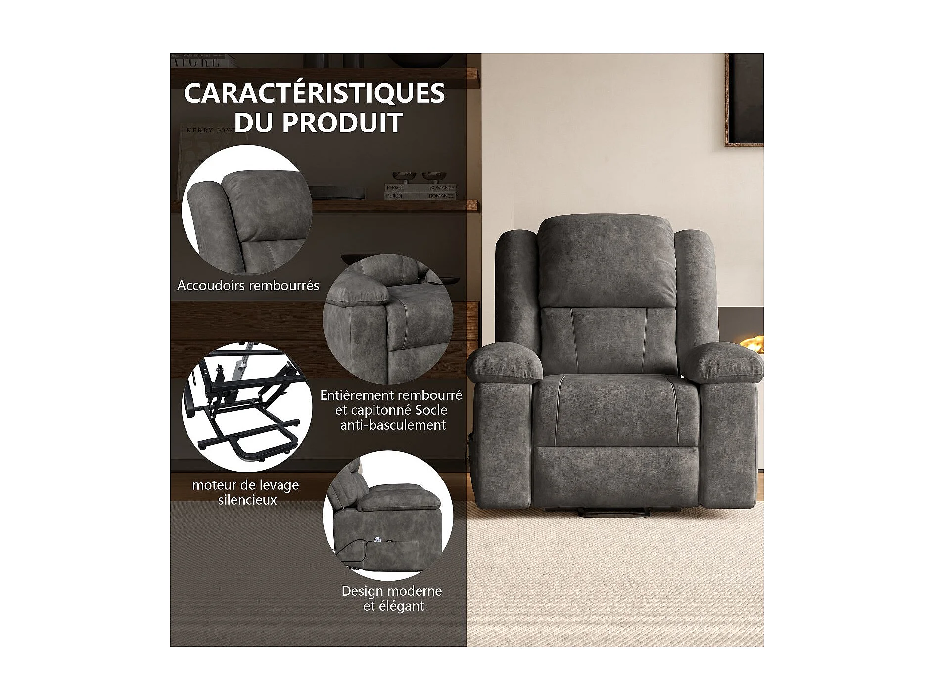 Fauteuil de massage électrique avec accoudoirs rembourrés, fauteuil inclinable, en tissu aspect daim, disponible en noir ou marron.