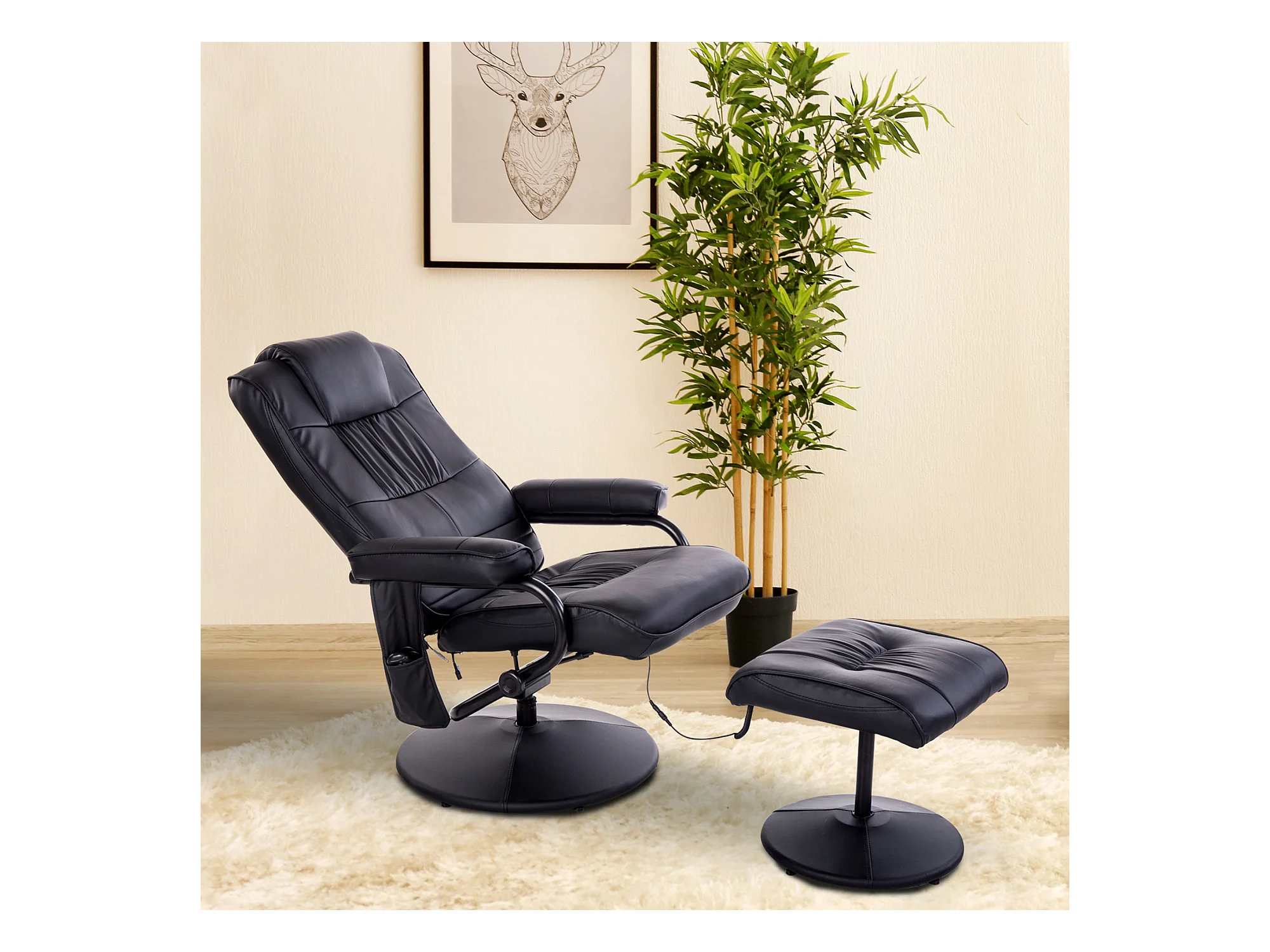 Fauteuil de massage et relaxation électrique inclinable pivotant repose-pied télécommande noir