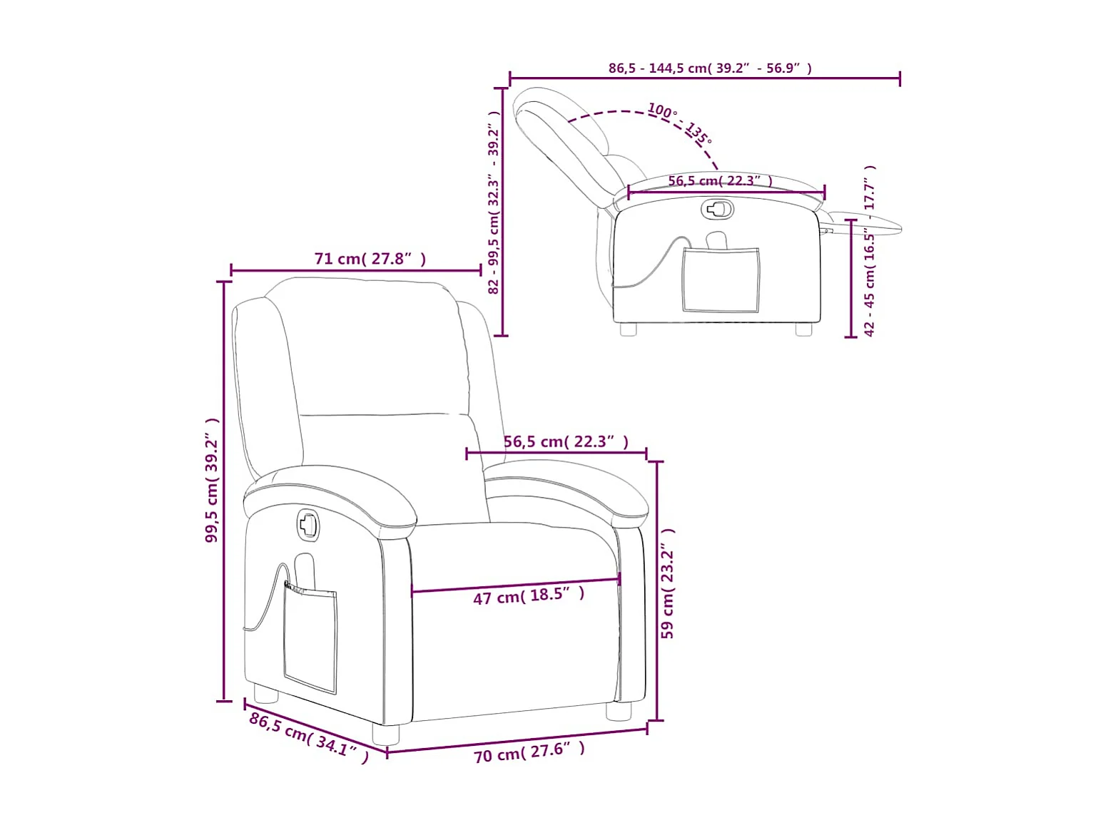 Fauteuil massant chauffant inclinable poches rangement port USB intégré velours grège