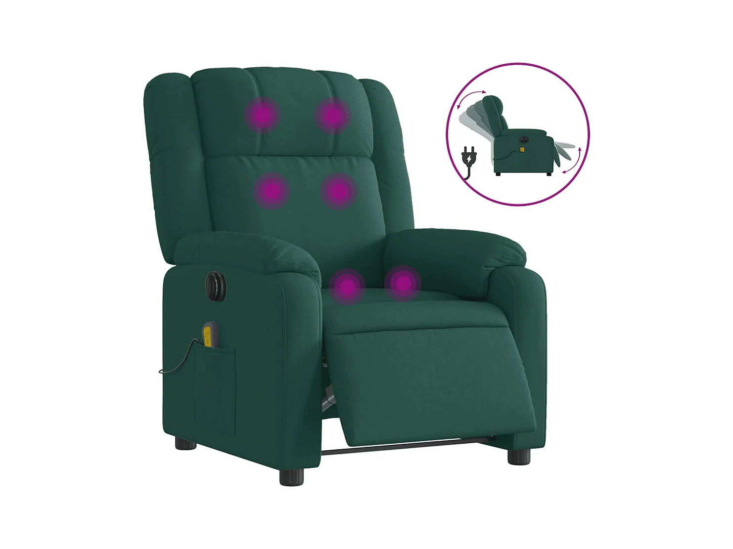 Fauteuil de massage inclinable électrique Vert foncé Tissu REO45917
