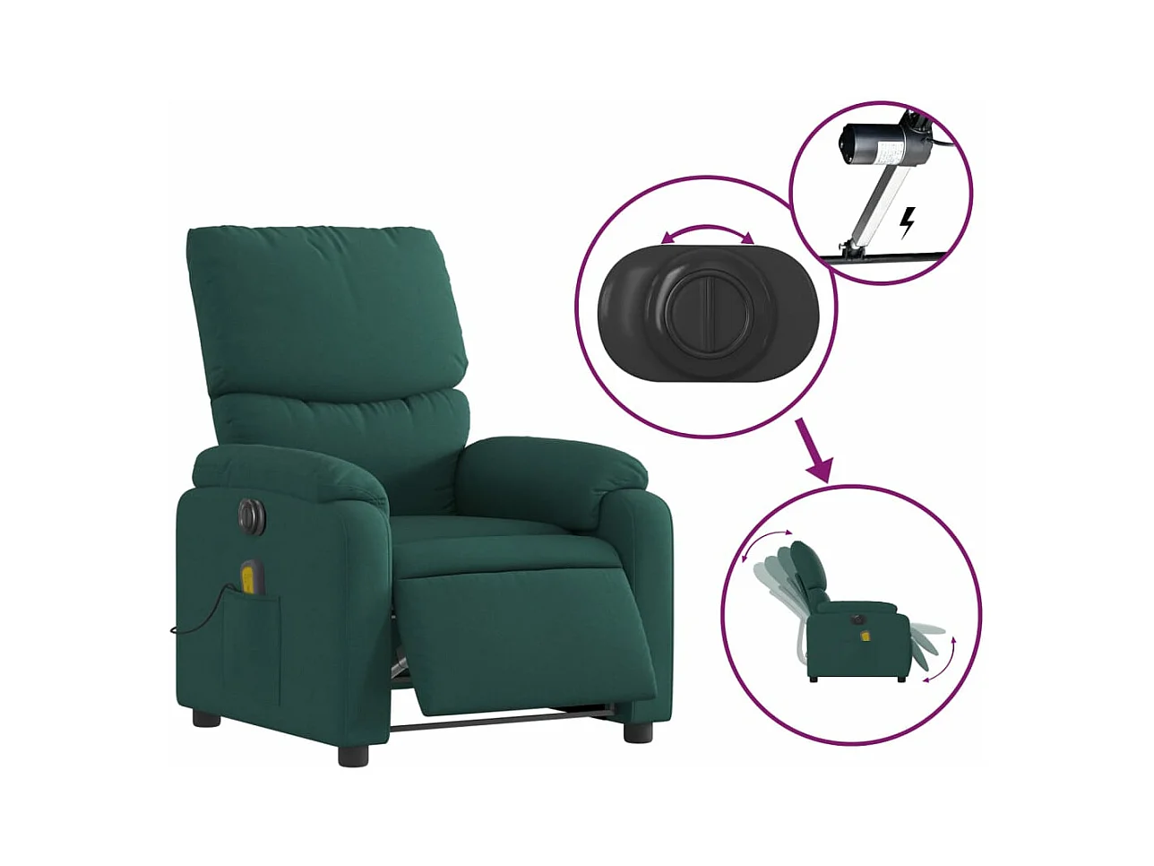 Fauteuil de massage inclinable électrique Vert foncé Tissu REO62617