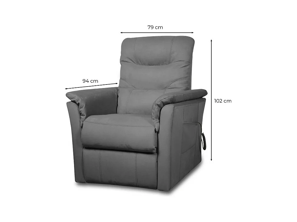 Fauteuil de relaxation Anabel électrique et releveur en tissu gris - L79 x 94 x 102cm - Loungitude