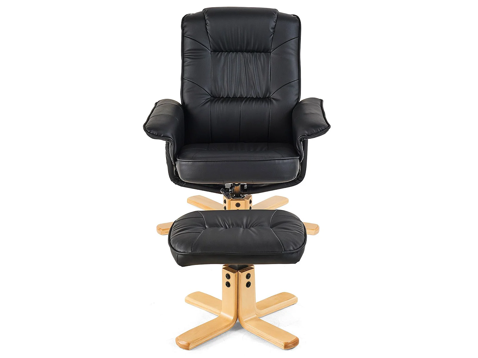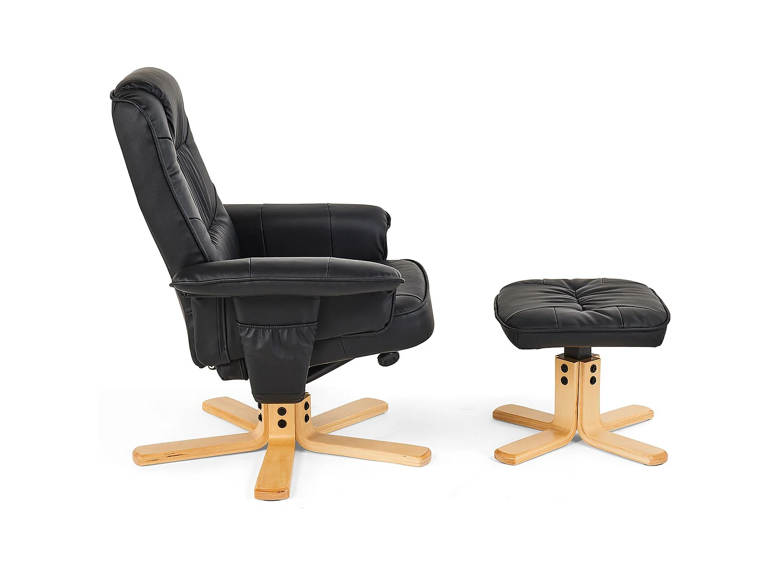Fauteuil de relaxation CHARLY avec repose-pieds pouf siège pivotant dossier inclinable assise rembourrée relax, en synthétique noir
