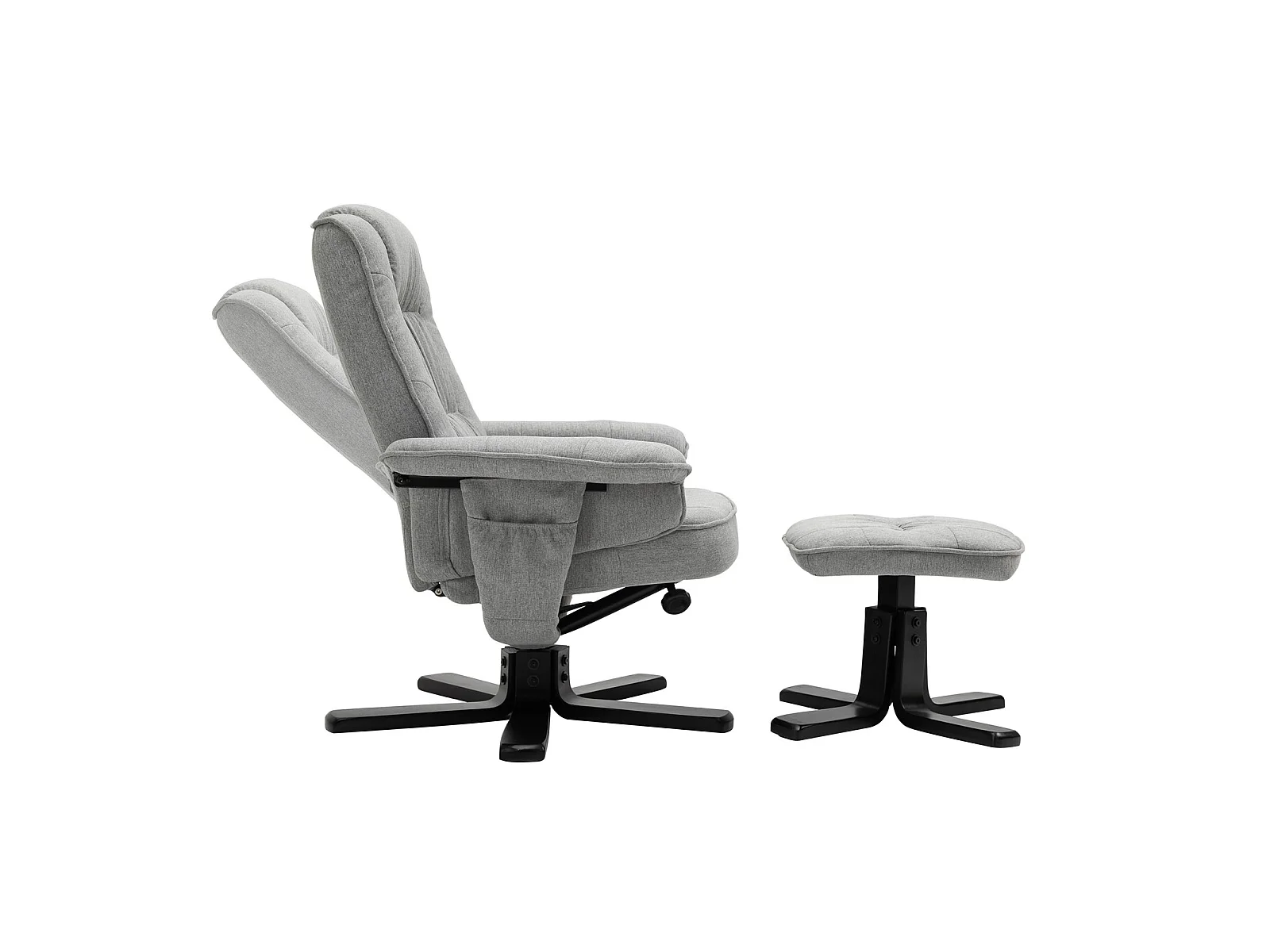 Fauteuil de relaxation CHARLY repose-pieds siège pivotant dossier inclinable assise rembourrée relax, en tissu gris et pieds noirs