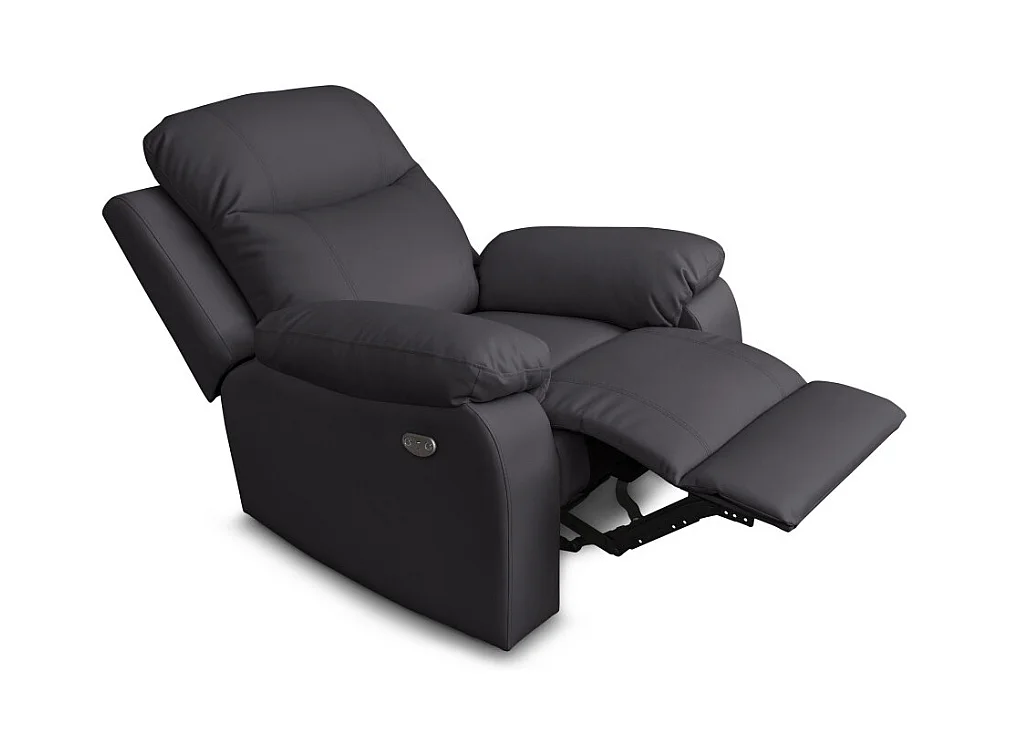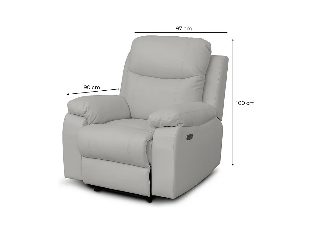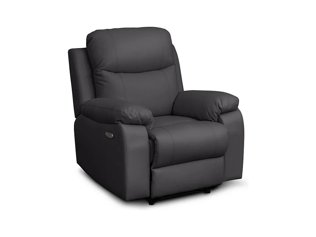 Fauteuil de relaxation électrique Bona en tissu imitation cuir - Gris anthracite - L97 x 90 x 100cm - Loungitude