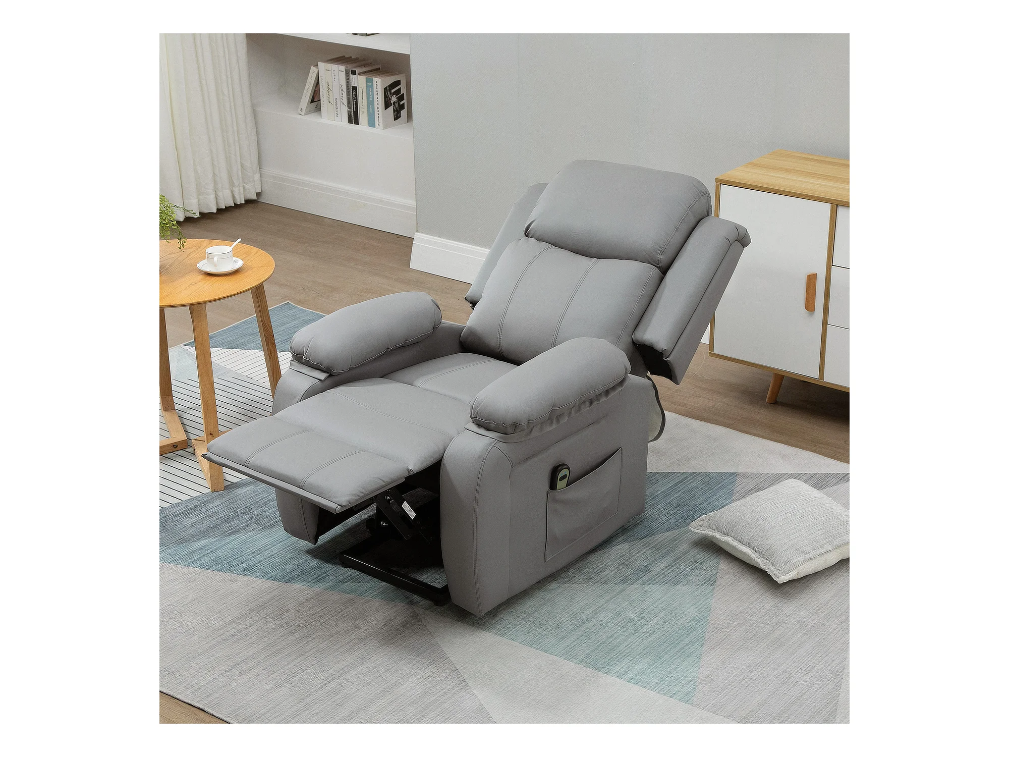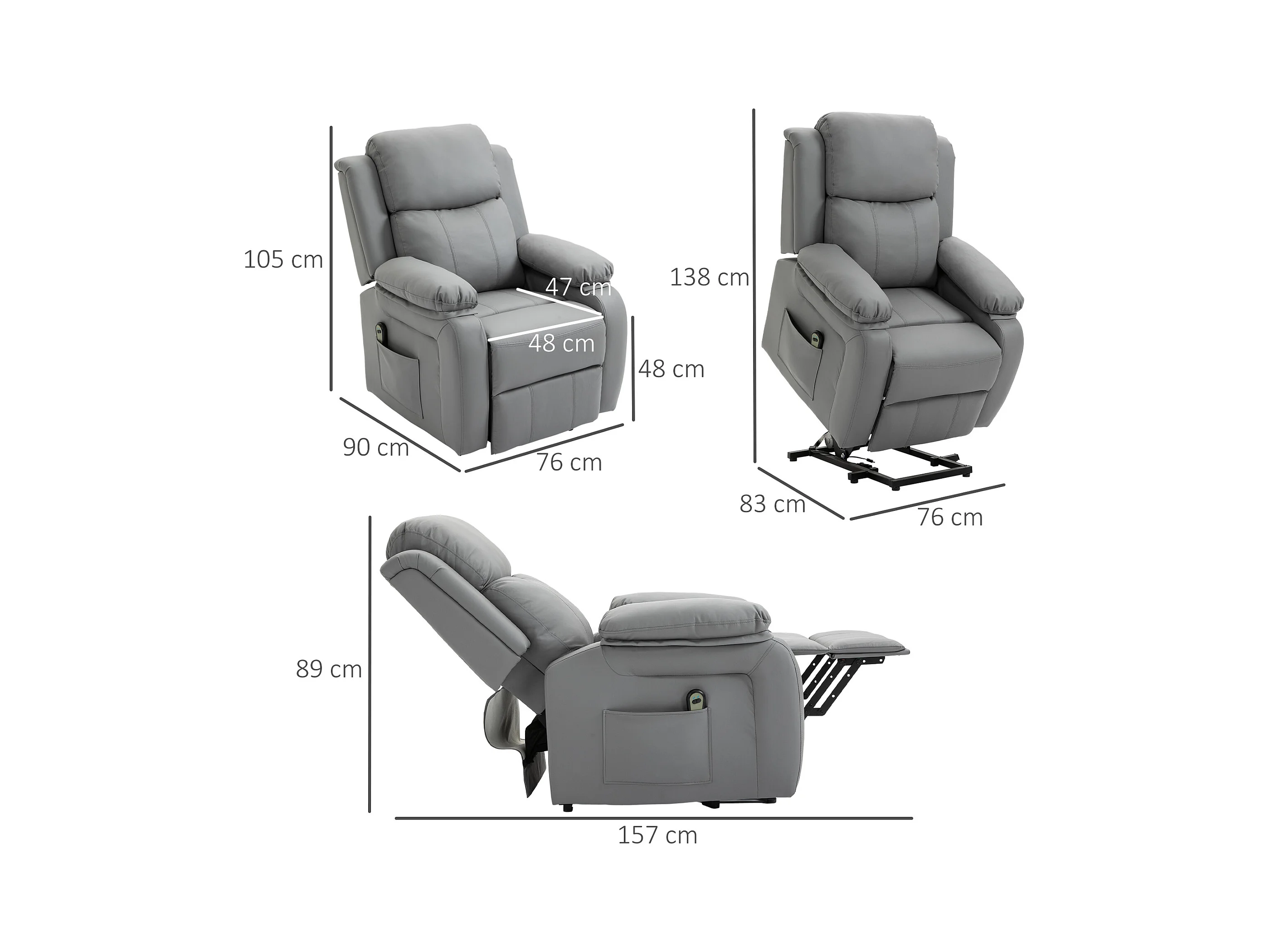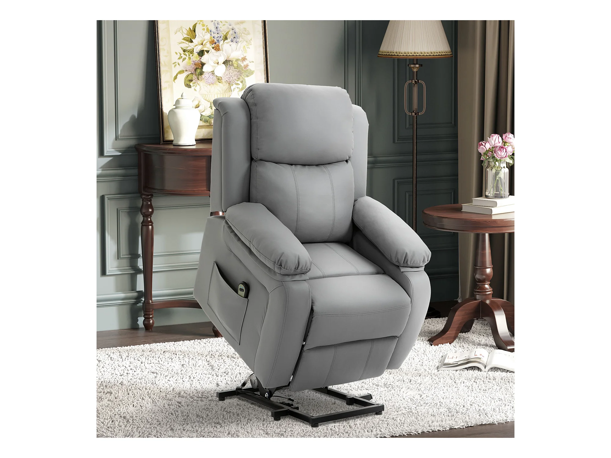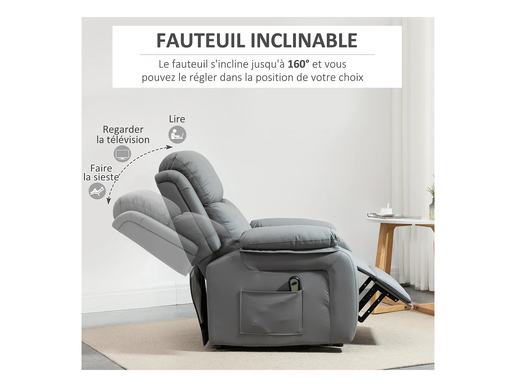 Fauteuil de relaxation électrique fauteuil releveur inclinable repose-pied ajustable revêtement synthétique gris