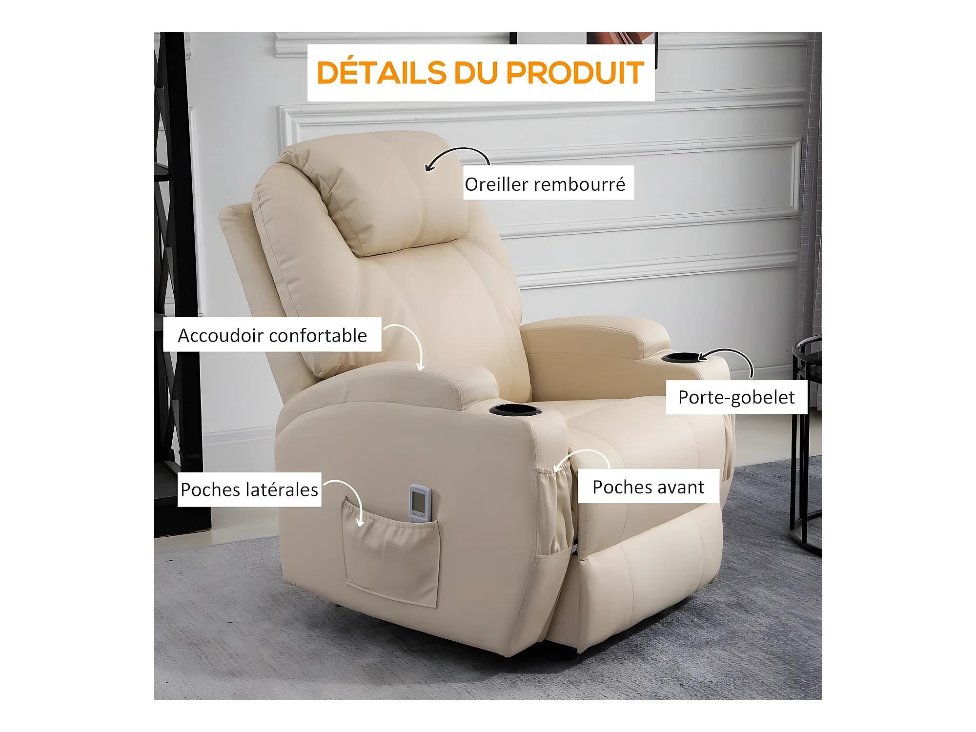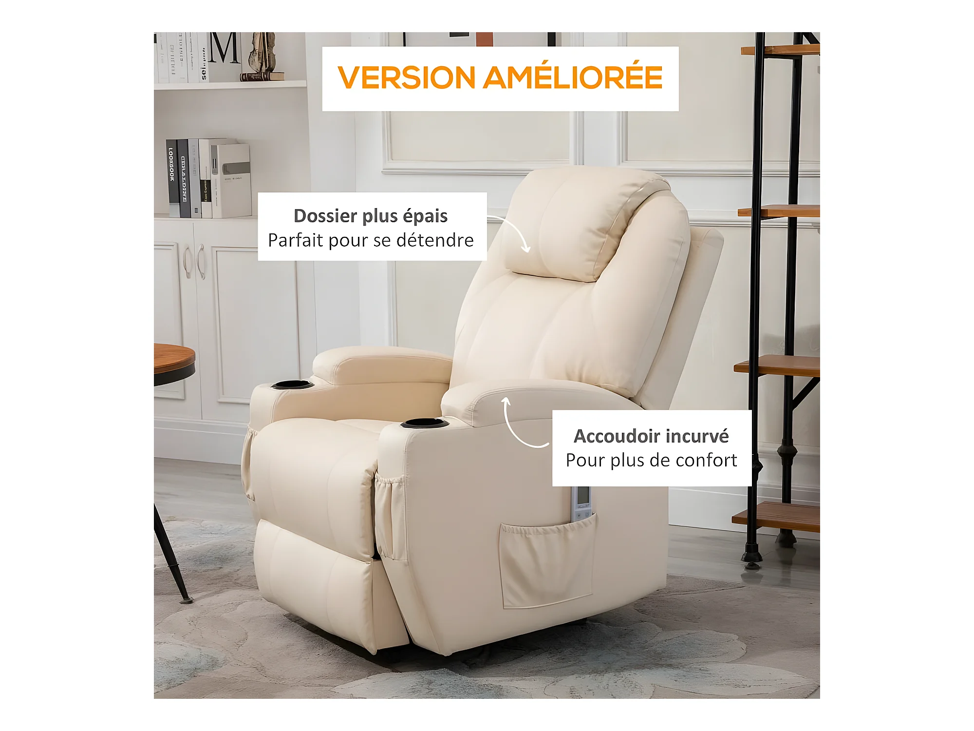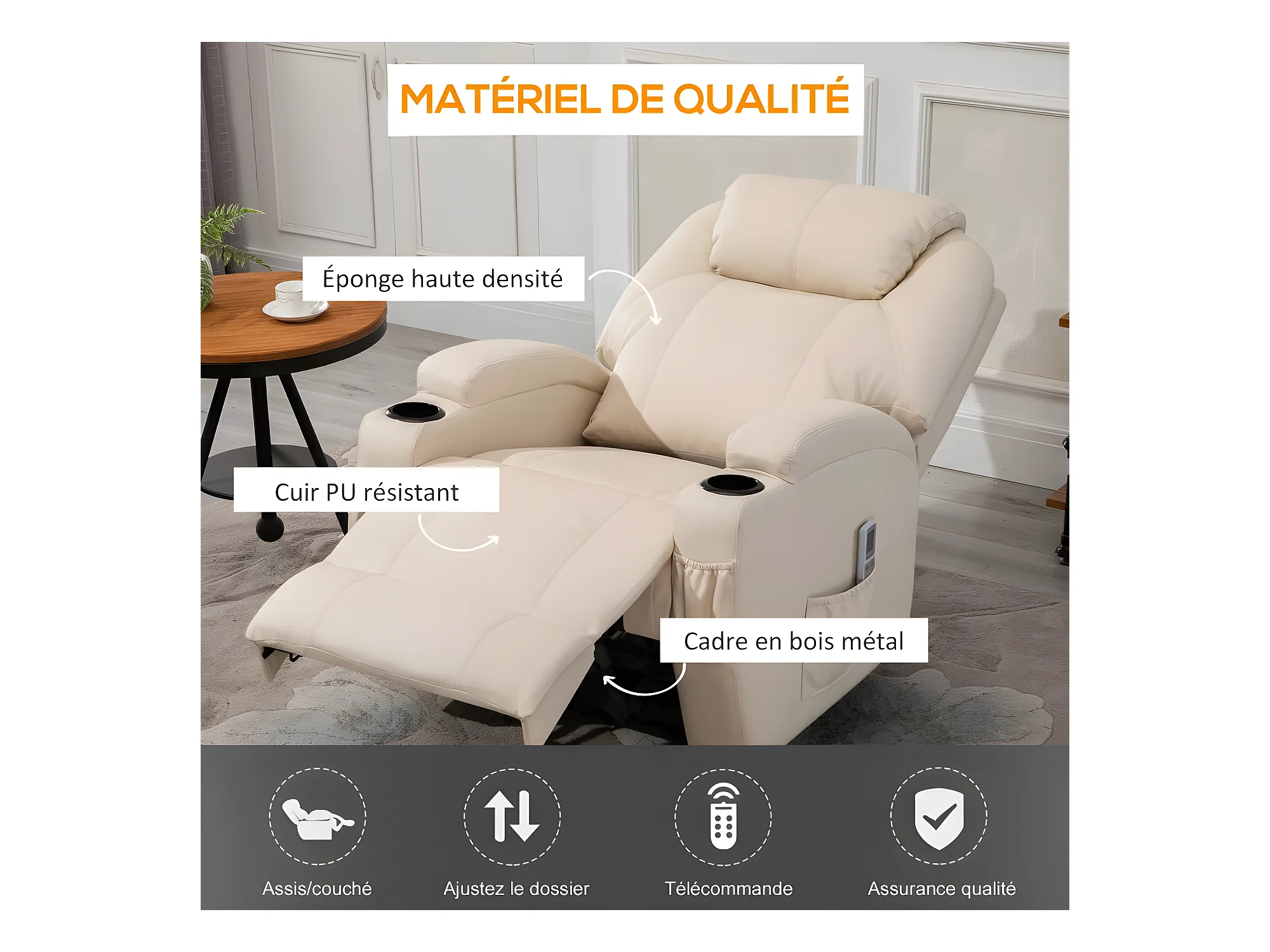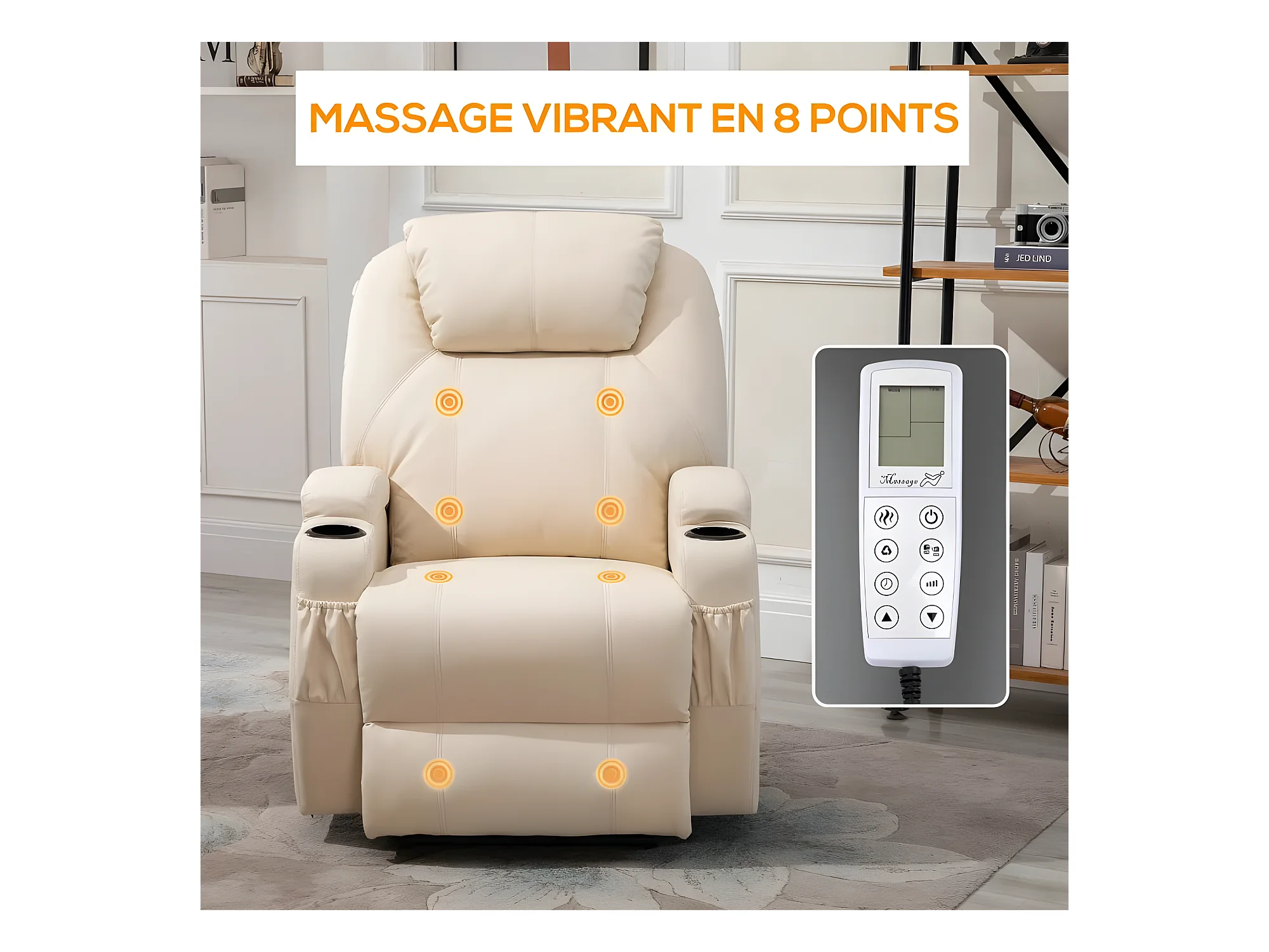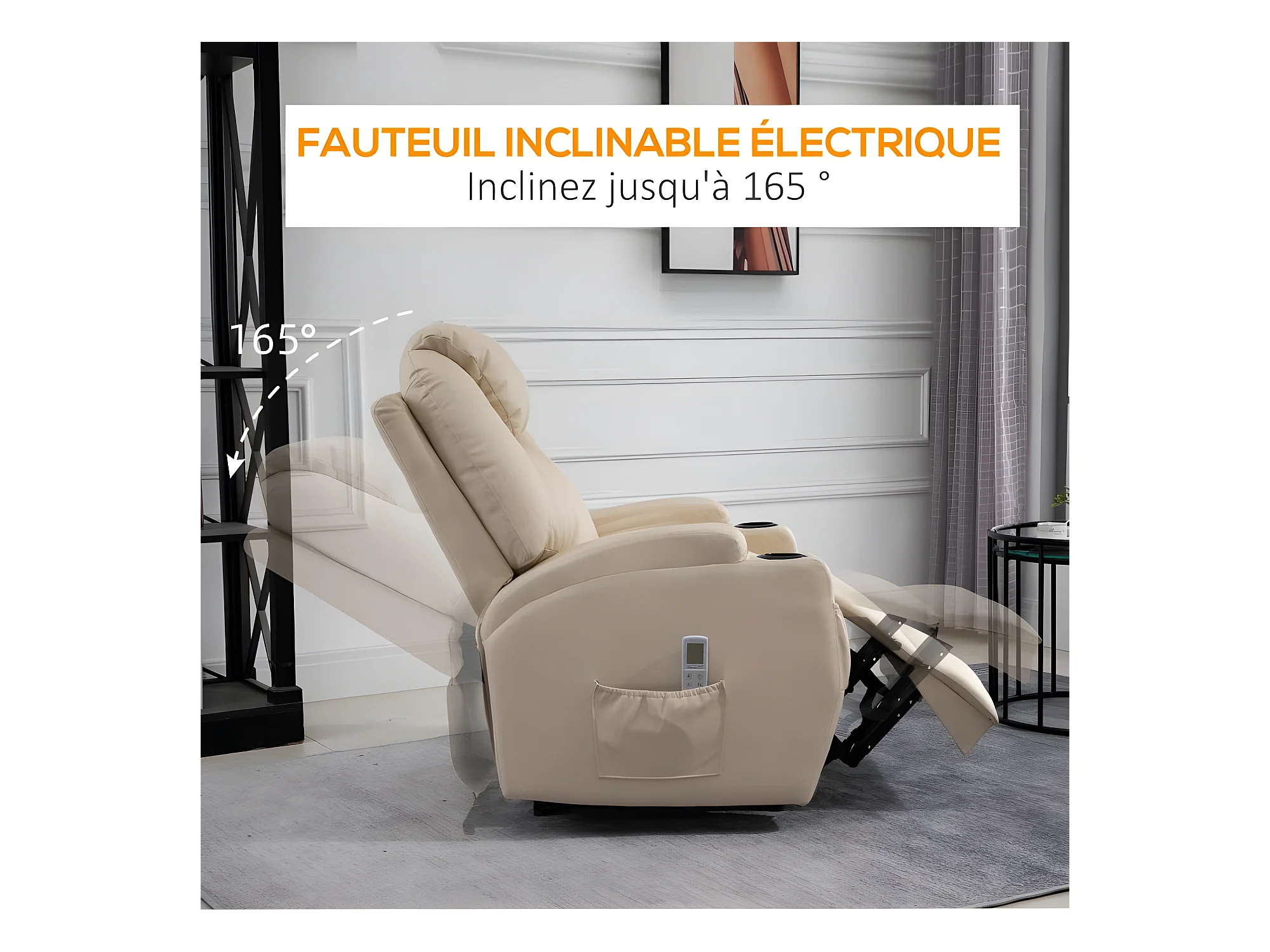 Fauteuil de relaxation éléctrique massant inclinable CHARLOTTE Crème