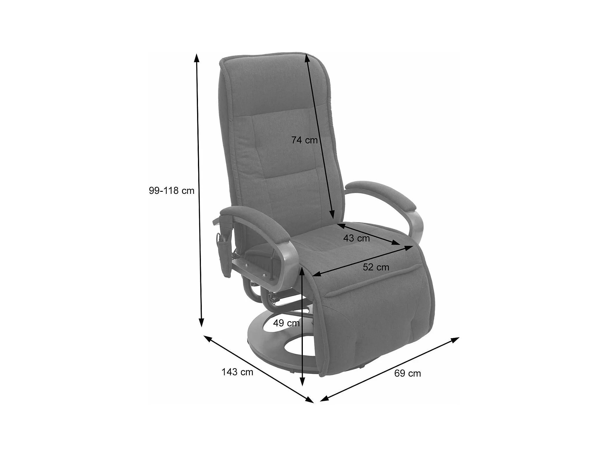 Fauteuil de relaxation fonction tissu grise 71 x 47 x 100 cm 04_0006384