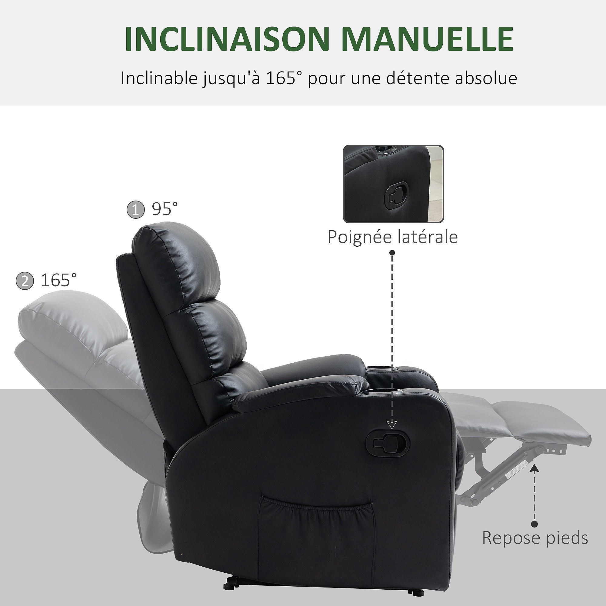 Fauteuil de relaxation inclinable avec repose-pied ajustable revêtement synthétique noir