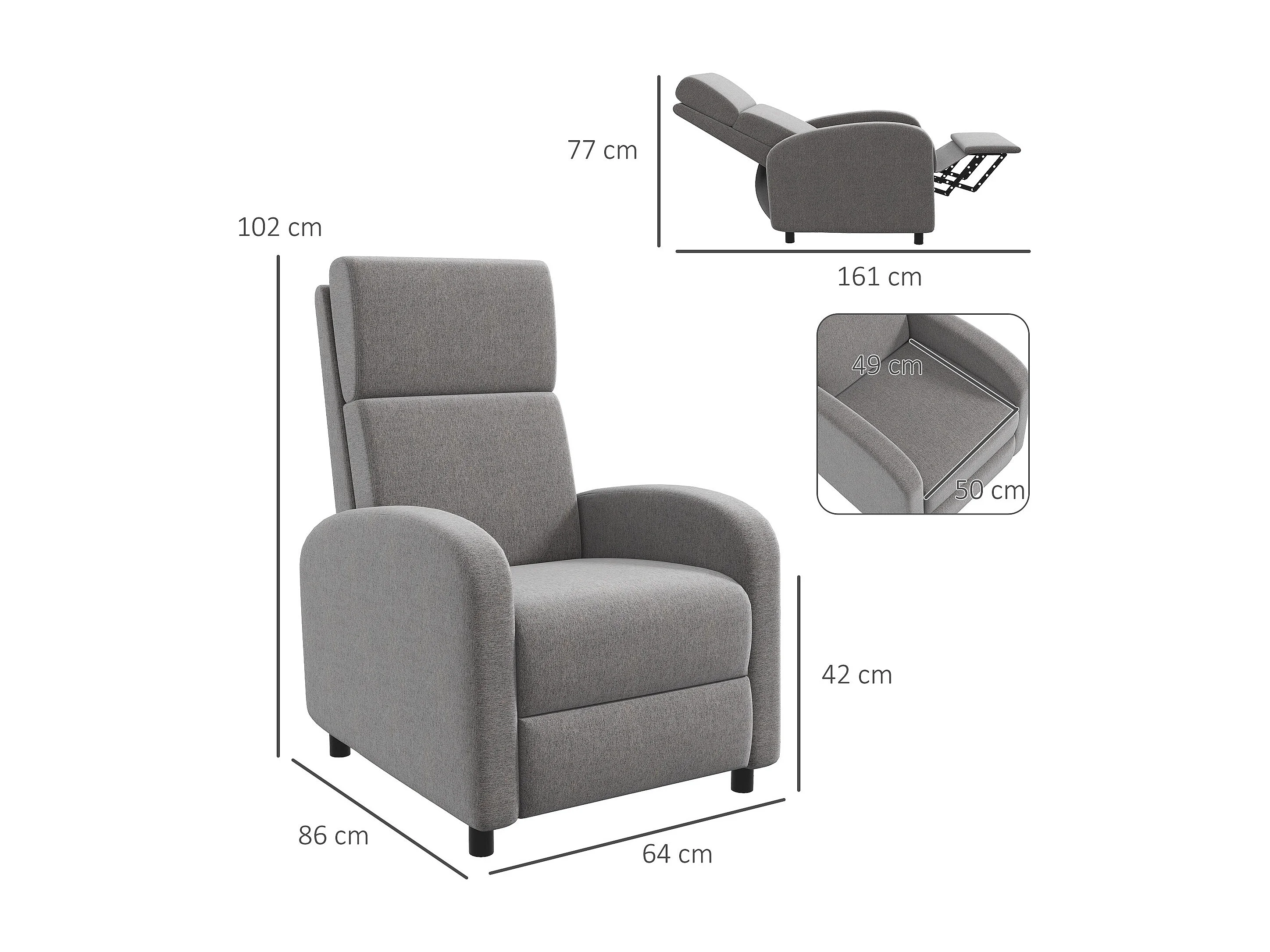 Fauteuil de relaxation inclinable réglable repose-pied tissu gris