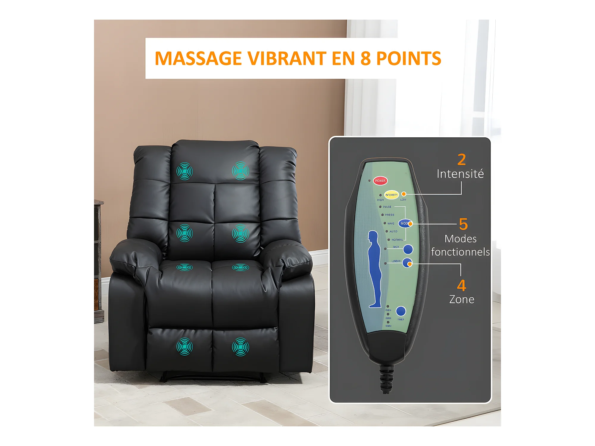 Fauteuil de relaxation massant EMILIO noir