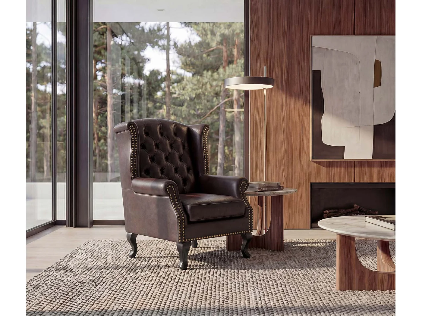 Fauteuil de relaxation Oxford, brun antique sans pouf