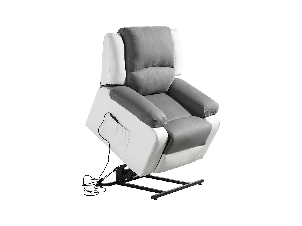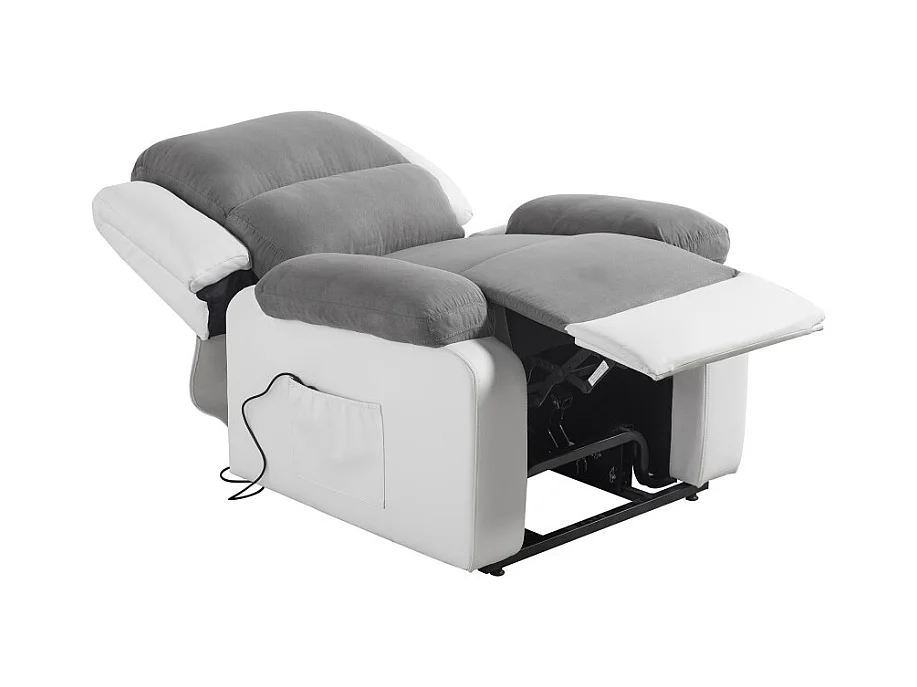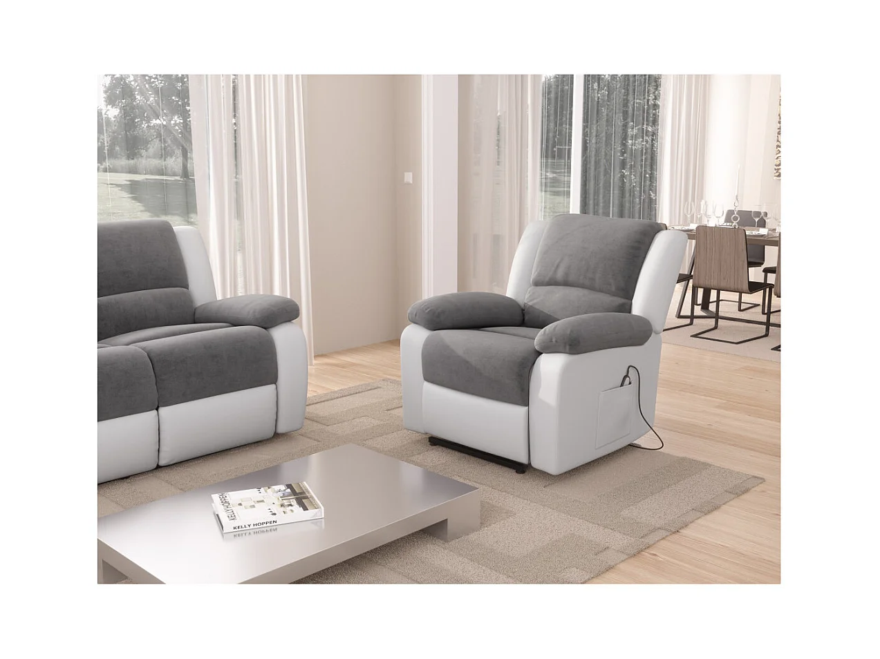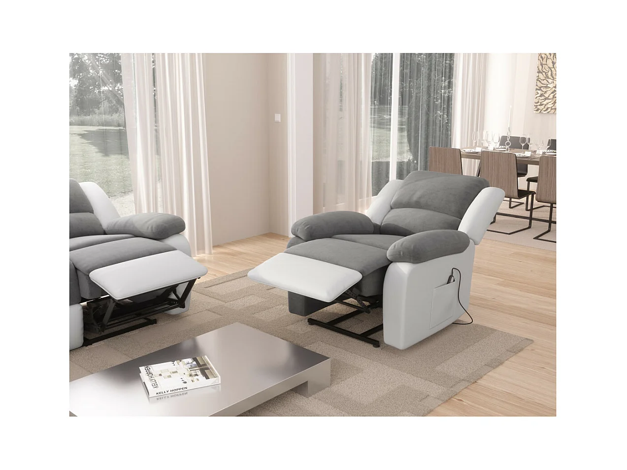 Fauteuil de Relaxation Releveur électrique 1 place Microfibre / Simili Léo - Blanc et gris - L88 x 93 x 96cm - Loungitude
