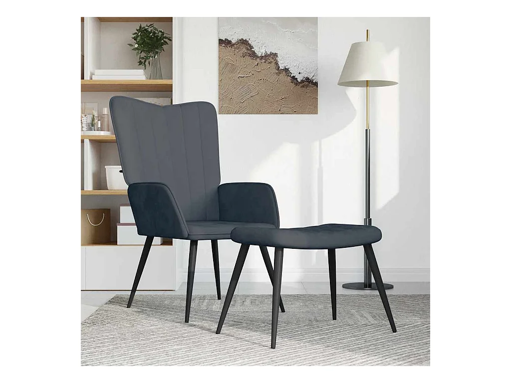 Chaise de relaxation moderne avec tabouret-Fauteuil de Salon Gris foncé Velours SHL4466
