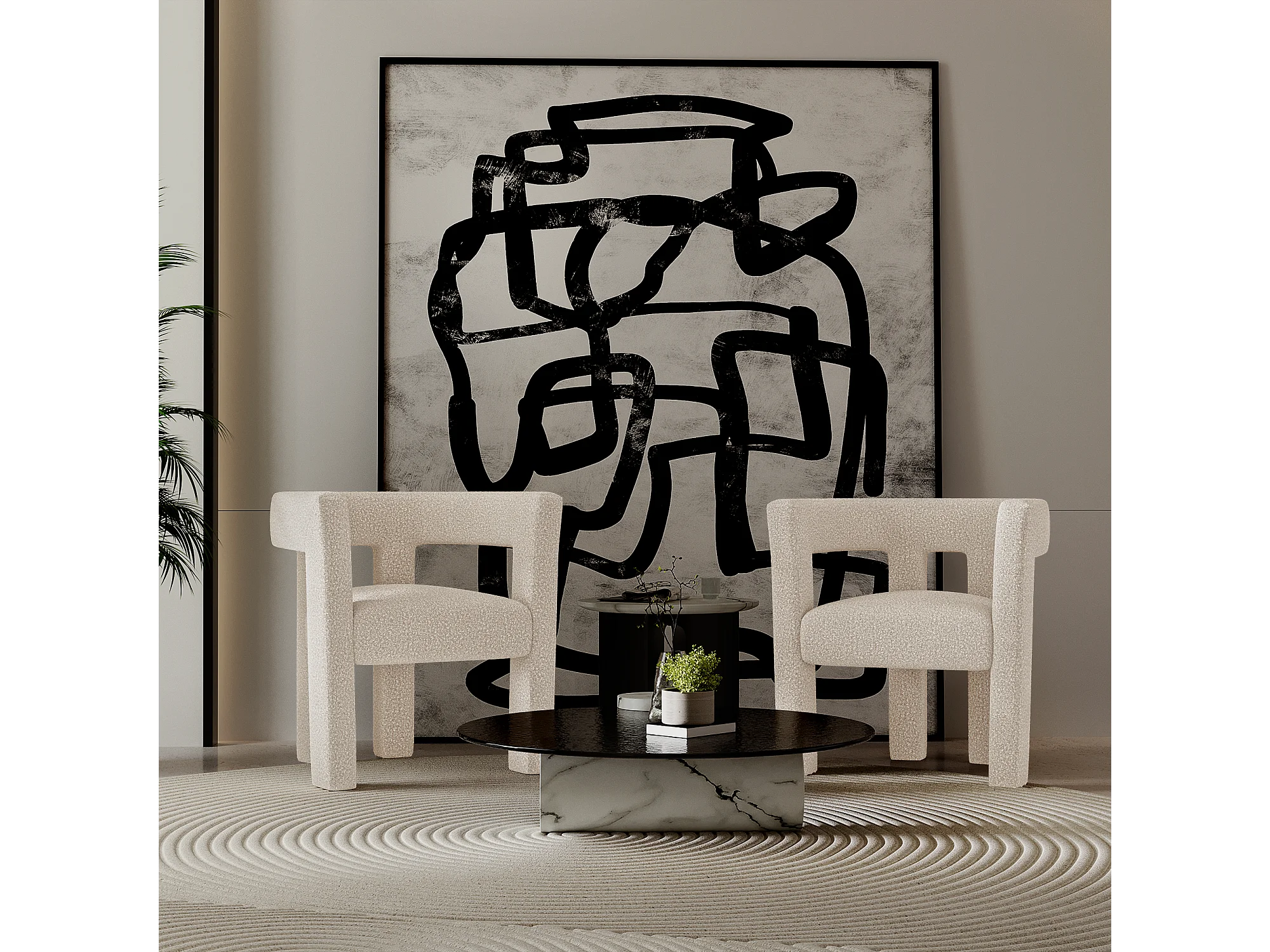Fauteuil de salle à manger bouclette beige ALYA