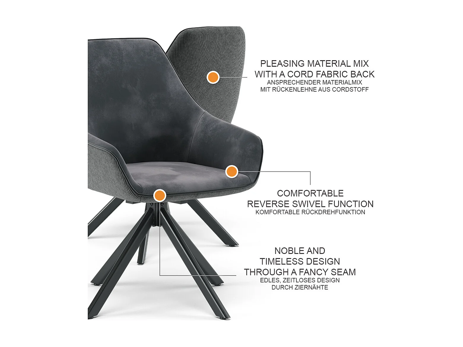 Fauteuil de salon anthracite 60x62x89 eleganza
