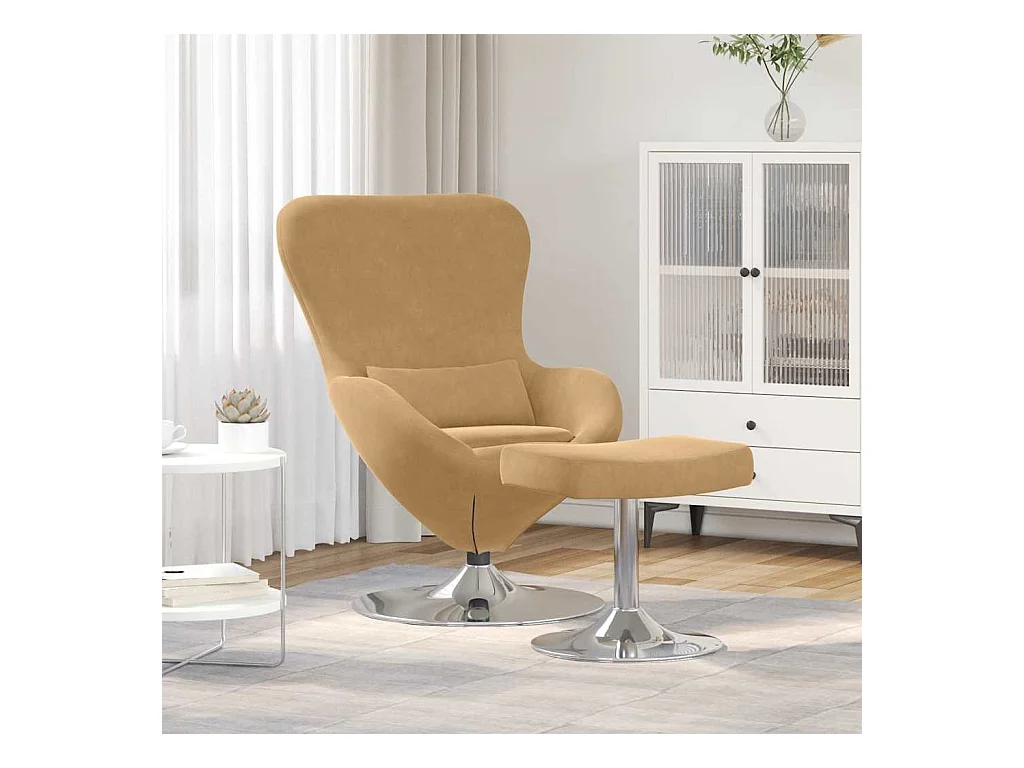 Fauteuil de Salon-Chaise-Fauteuil œuf avec repose-pieds Marron 63x73x90 cm Velours SHL3628