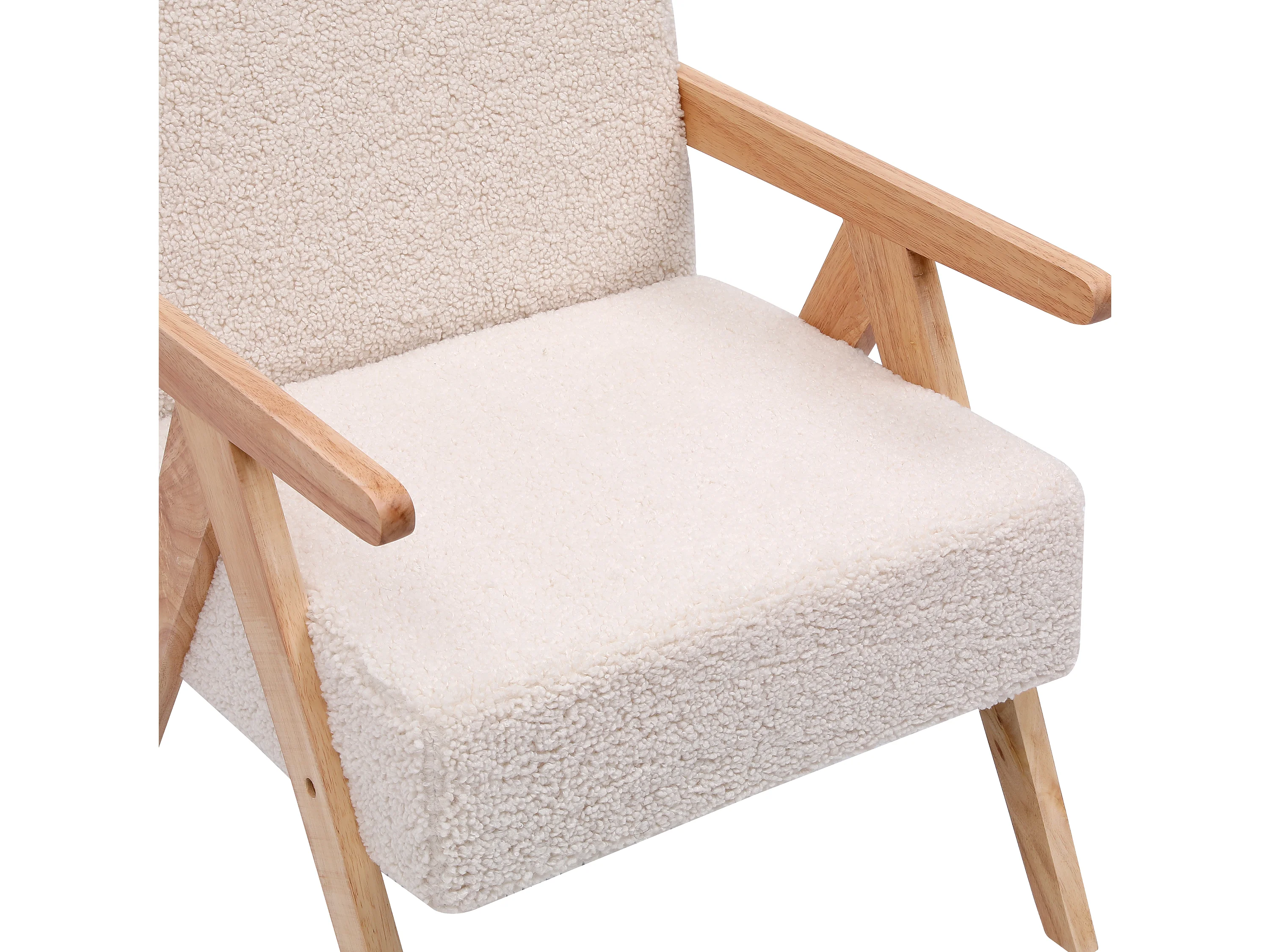 Fauteuil de salon en bois massif et bouclette blanche