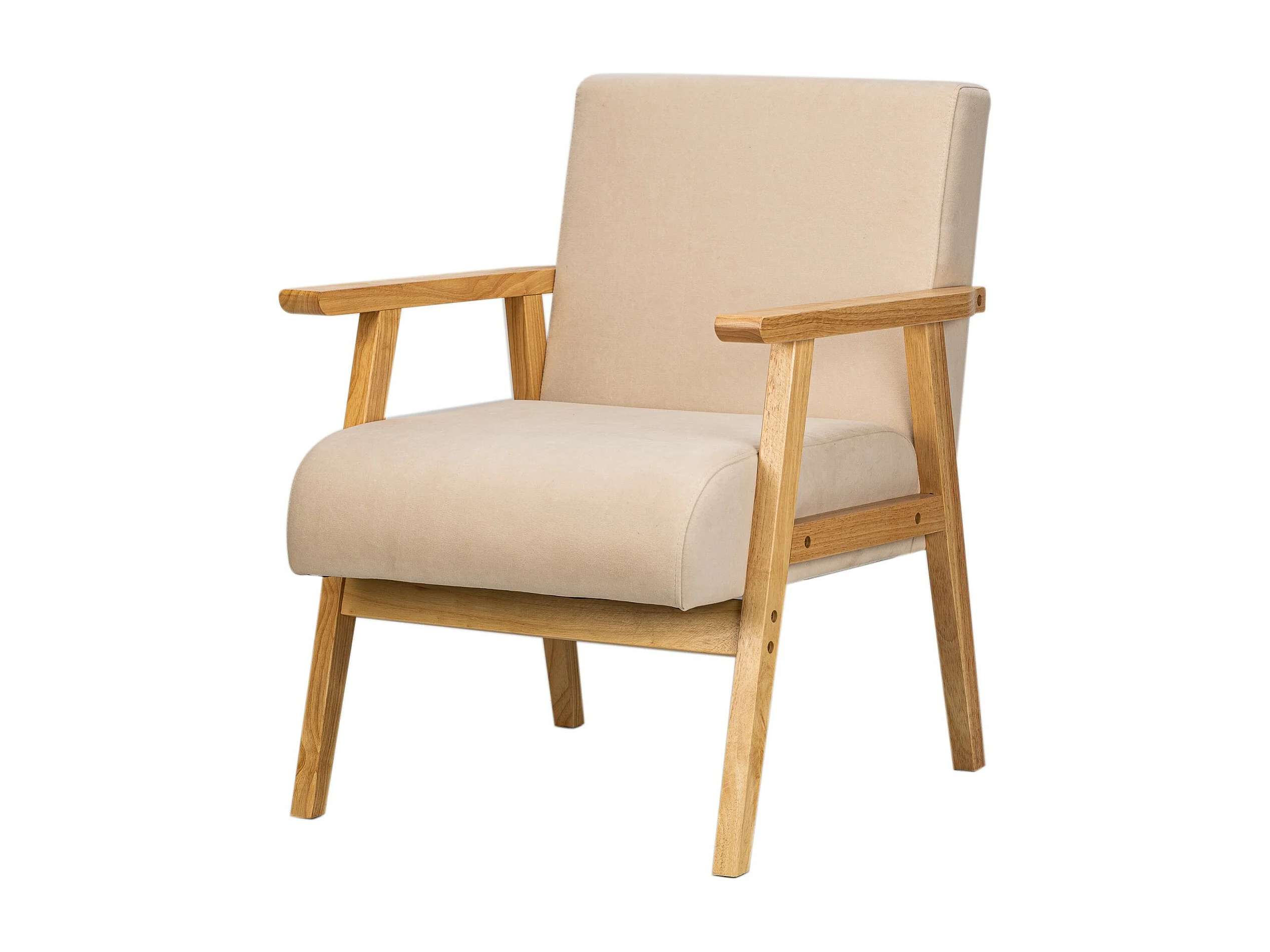 Fauteuil de salon en bois massif et tissu beige