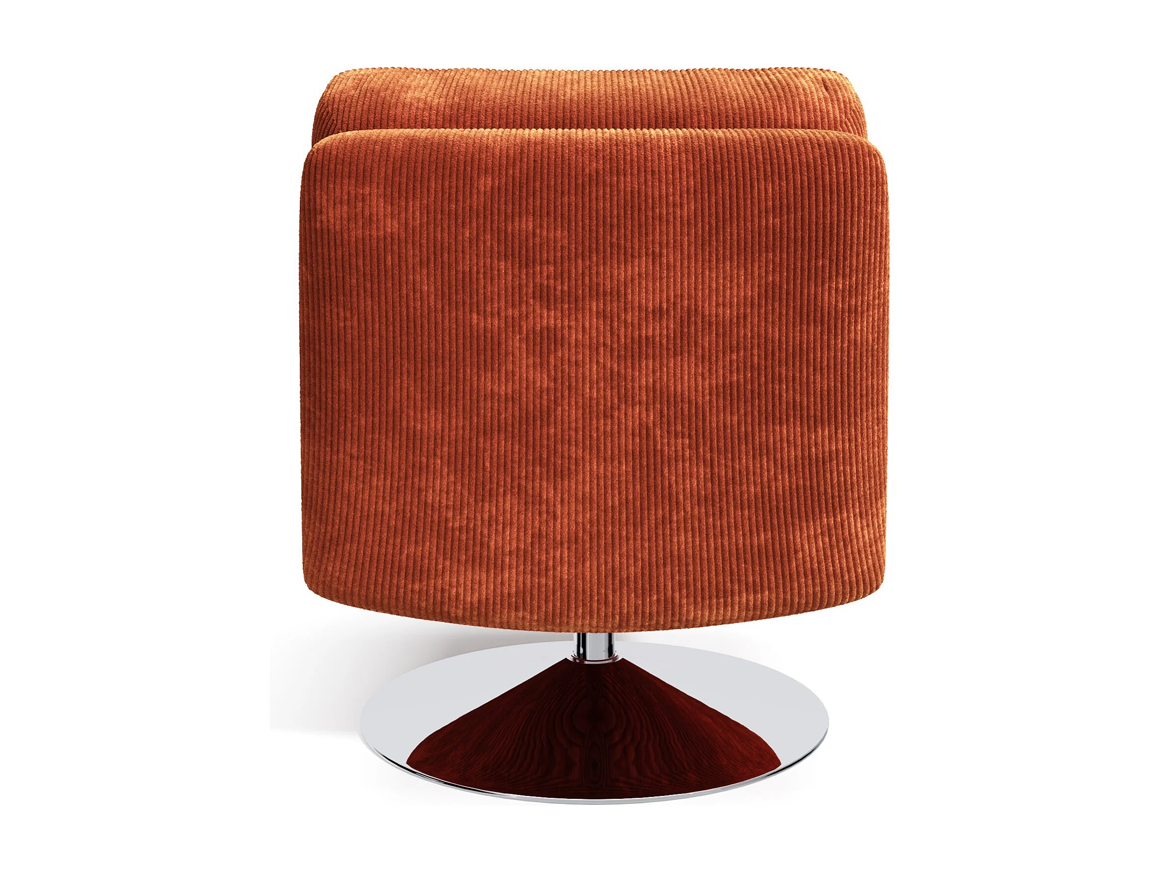 Fauteuil de salon pivotant pied chrome velours côtelé orange rétro TIMELESS