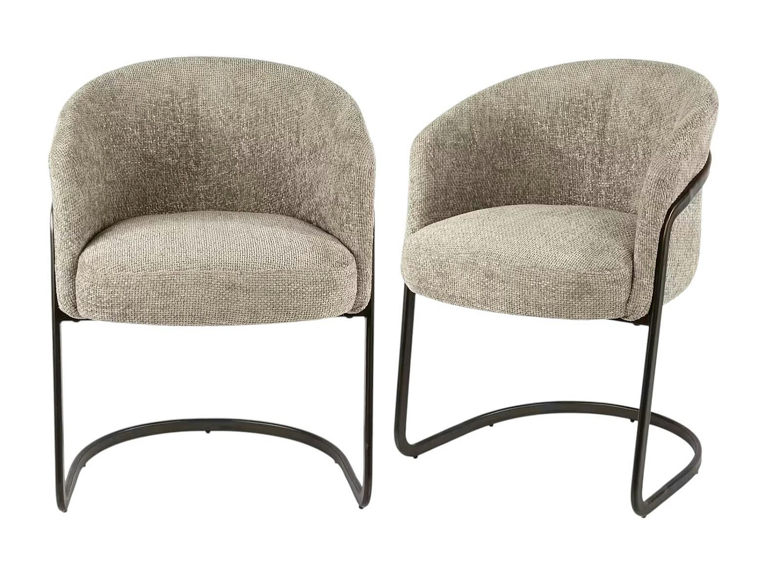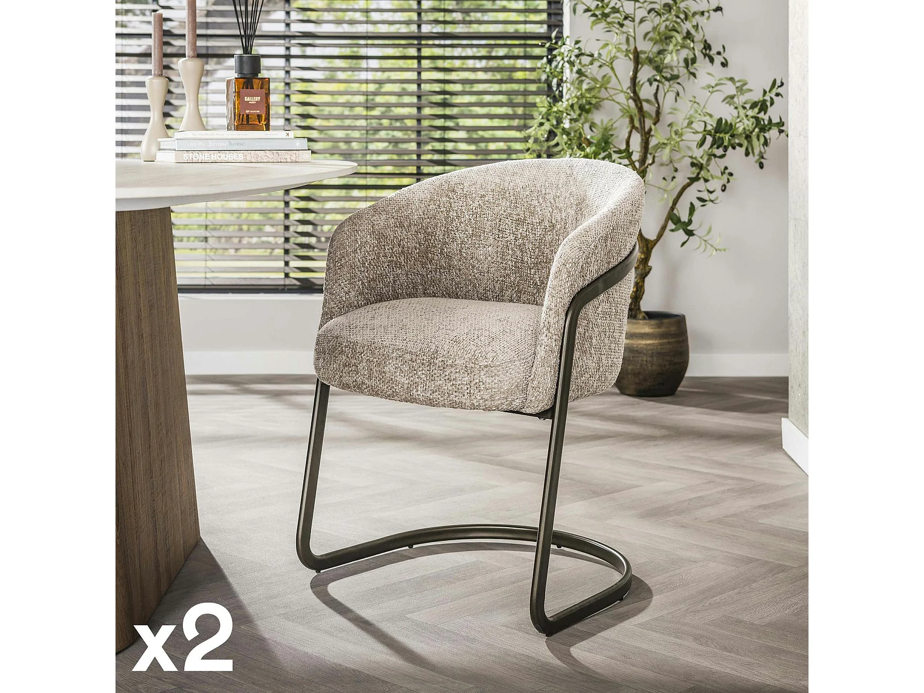 Fauteuil de table beige chenille pied luge bronze (lot de 2) ASCOLI