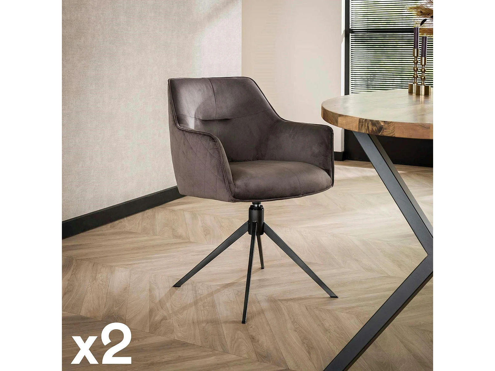 Fauteuil de table pivotant en velours gris motif damier (lot de 2) MELBOURNE