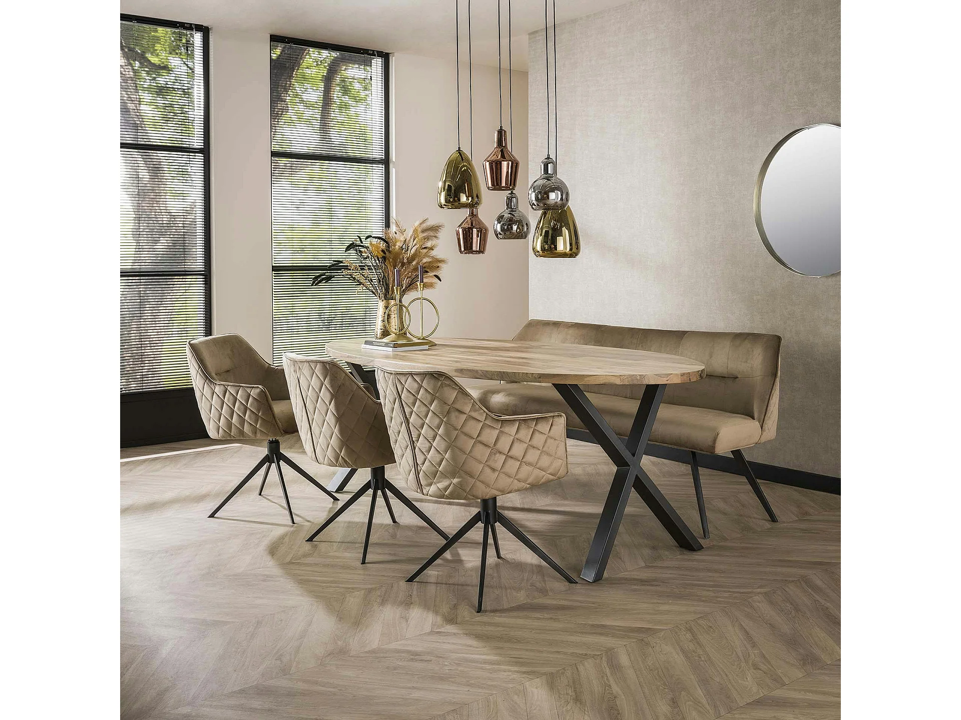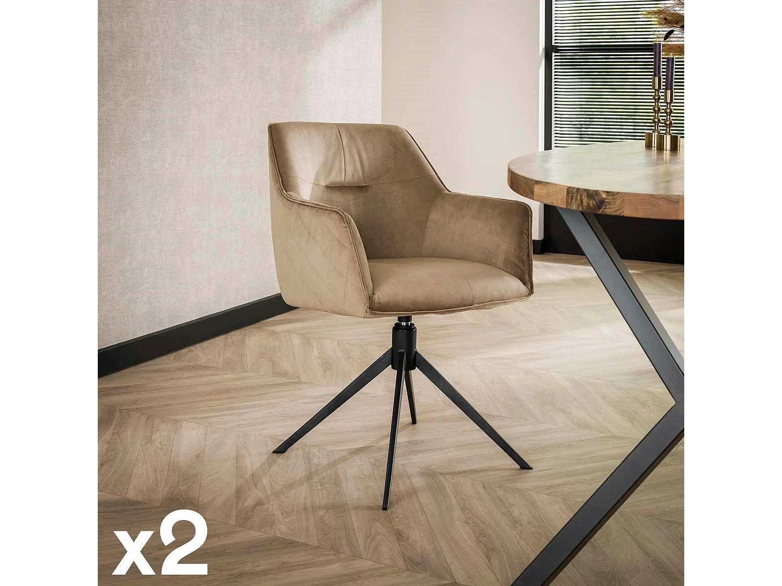 Fauteuil de table pivotant en velours sable motif damier (lot de 2) MELBOURNE