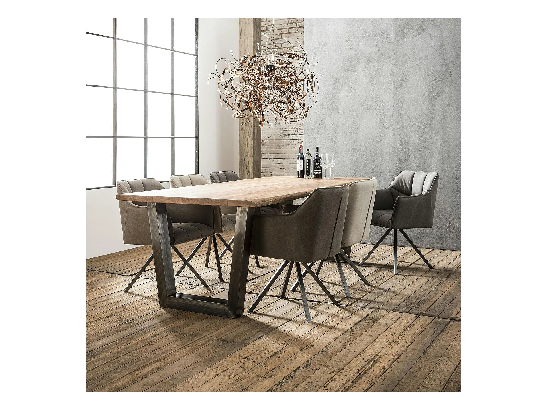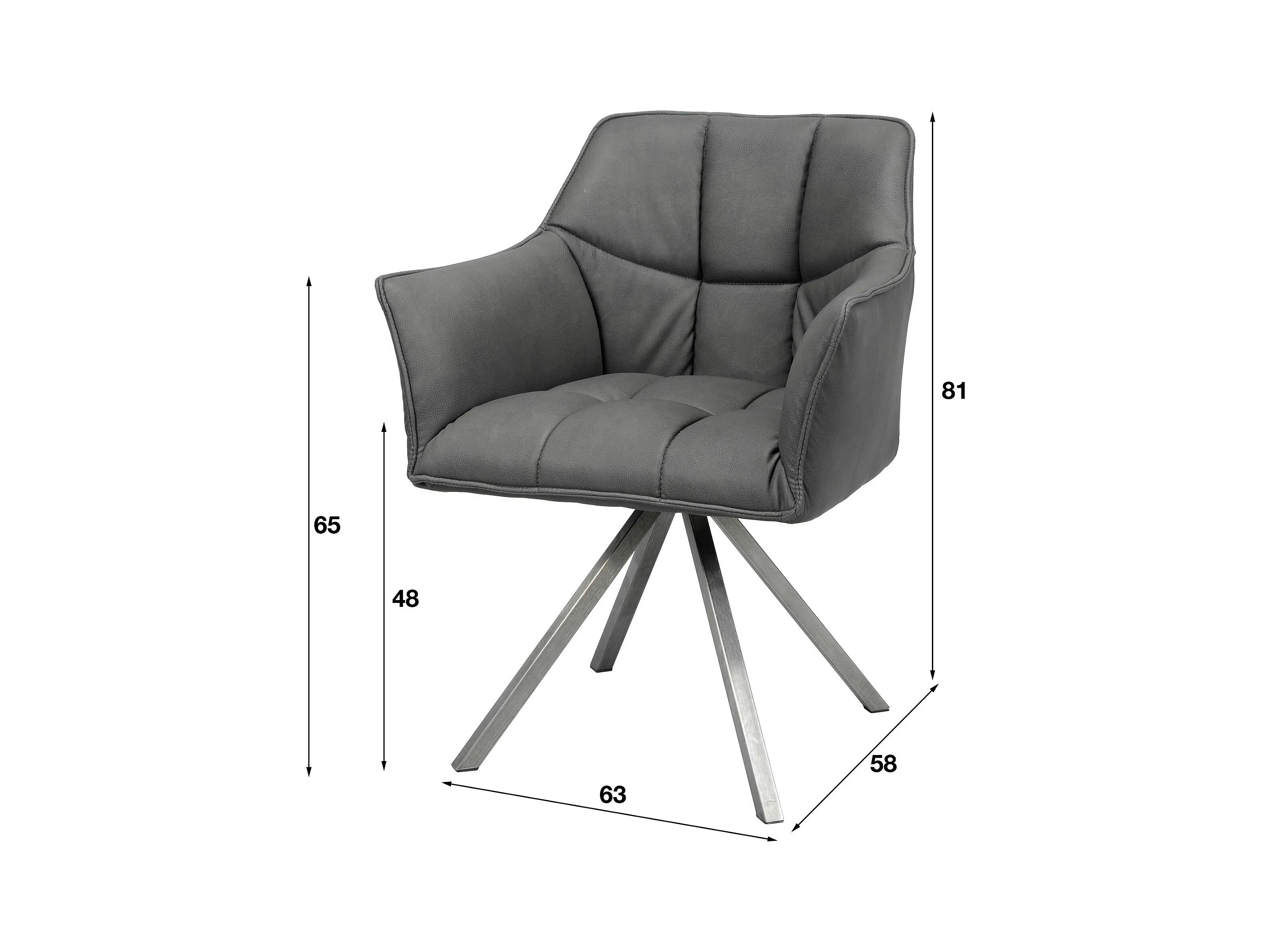 Fauteuil de table tissu jeans gris pied étoile LUCKNOW