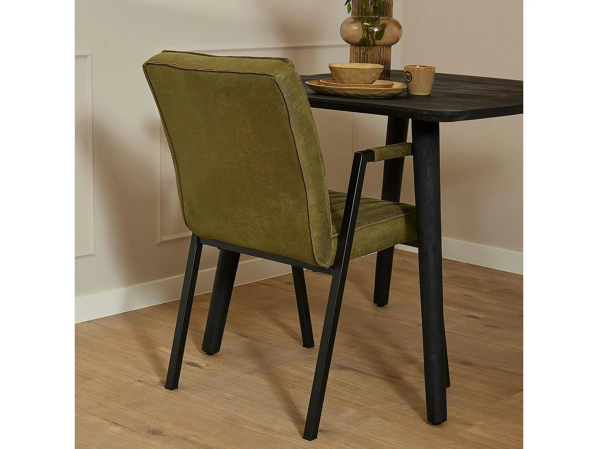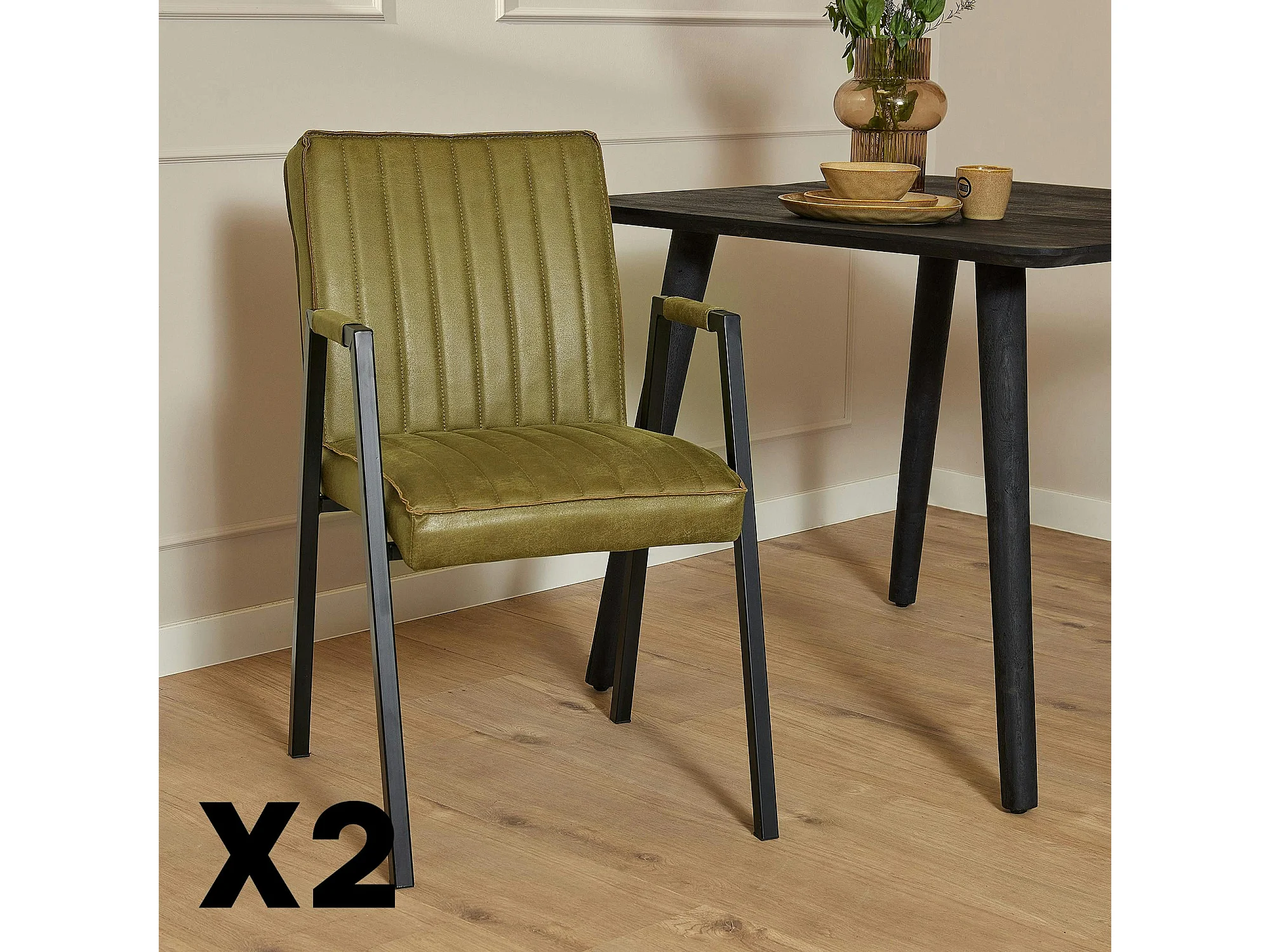 Fauteuil de table vert à bandes (lot de 2) CORTINA