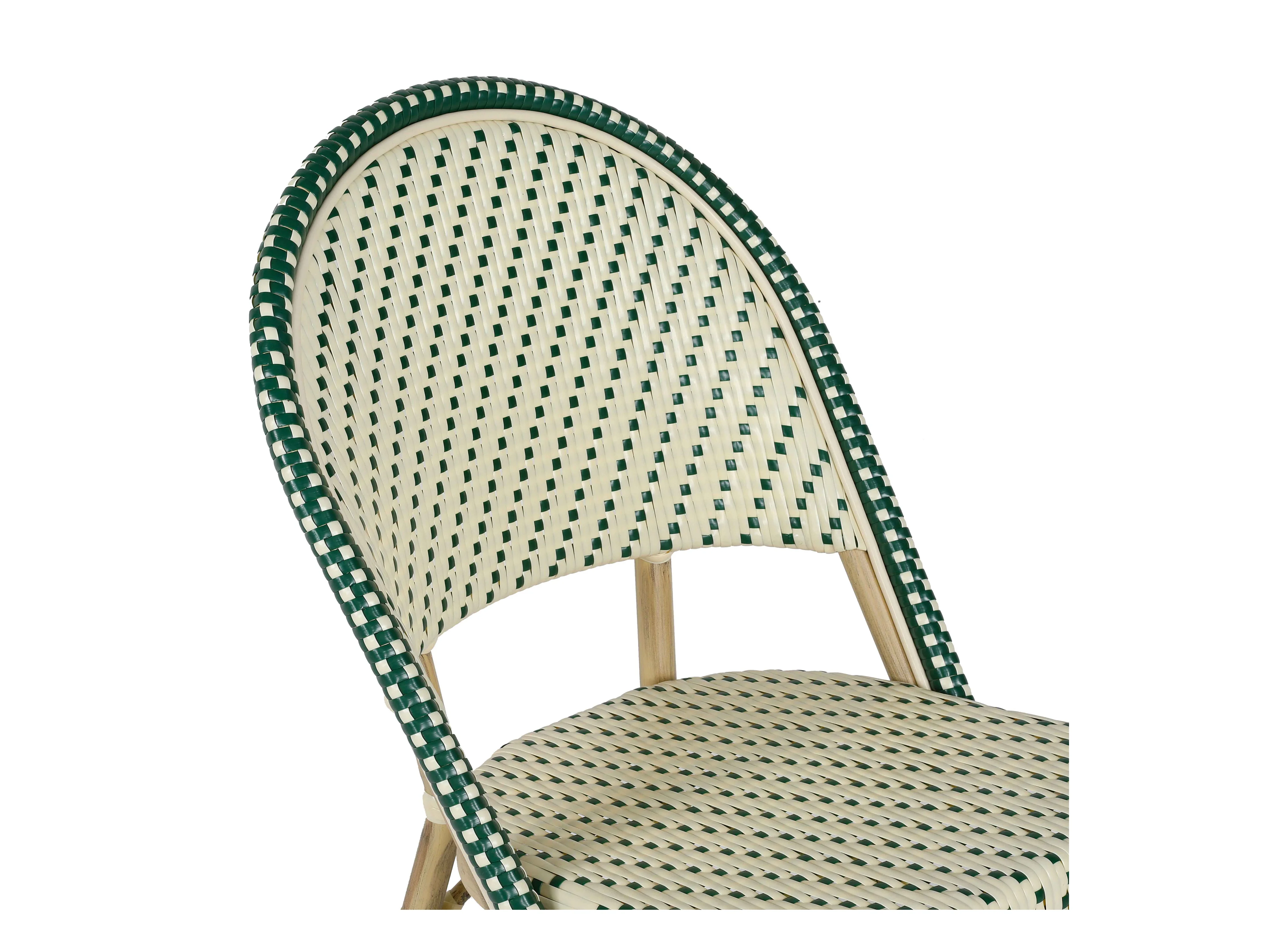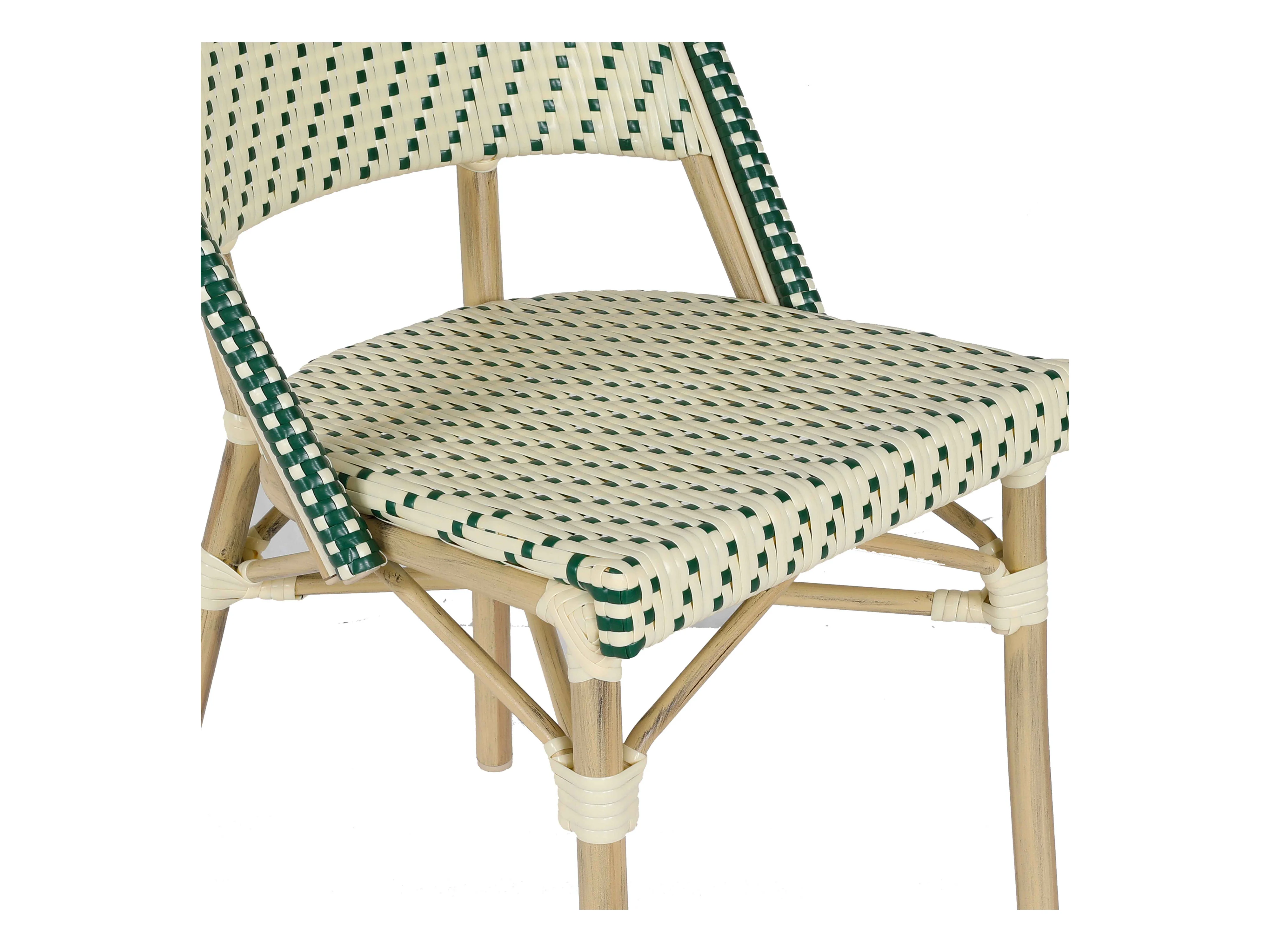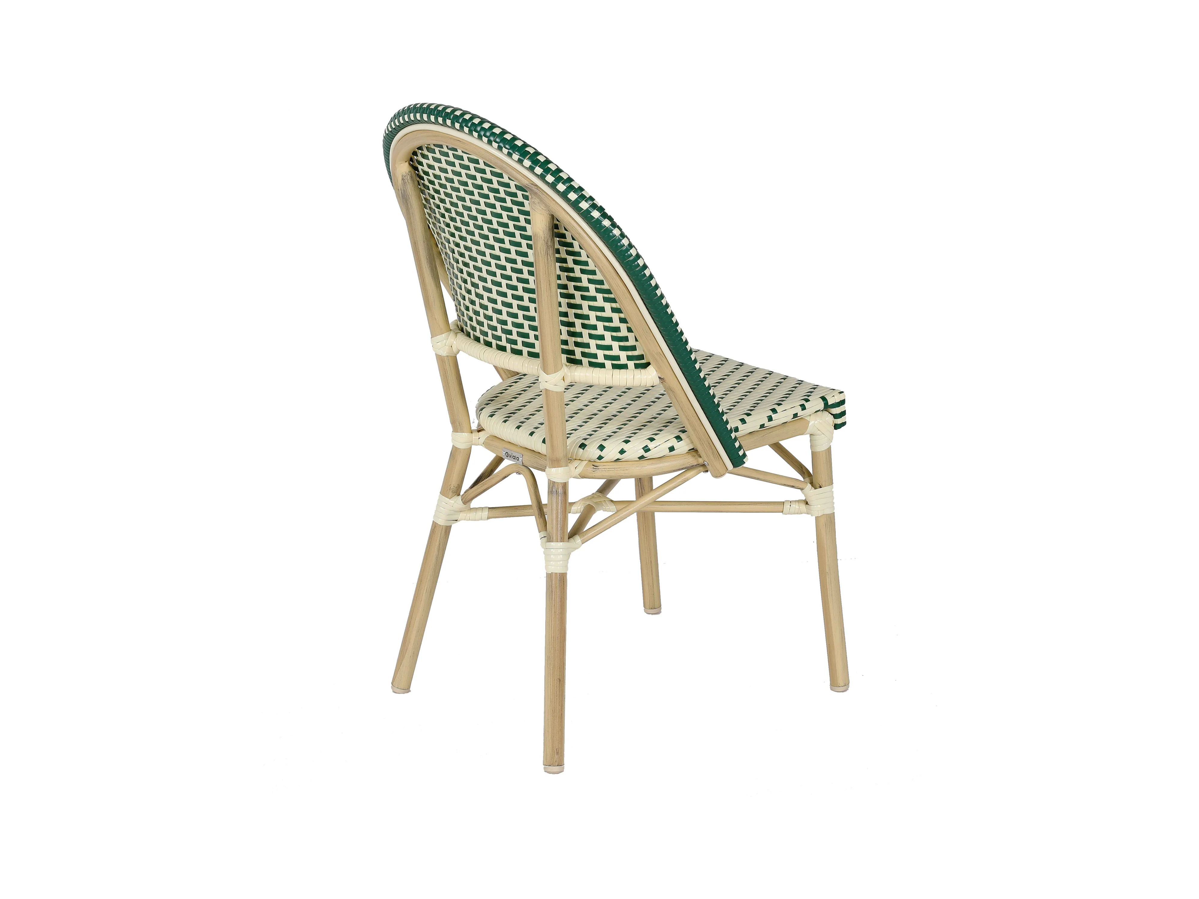 Chaise de terrasse bistrot parisien en aluminium et rotin vert foncé