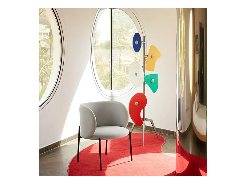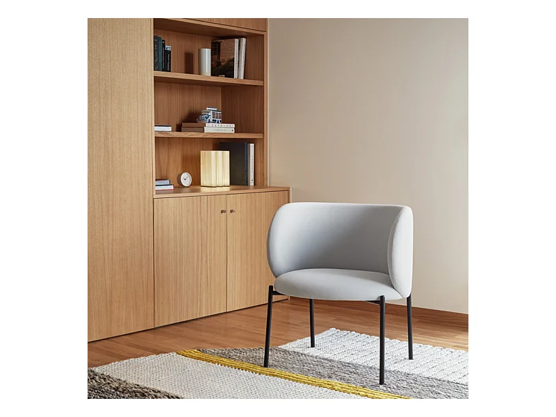 Fauteuil design arrondi en tissu pieds métal noir MOGI