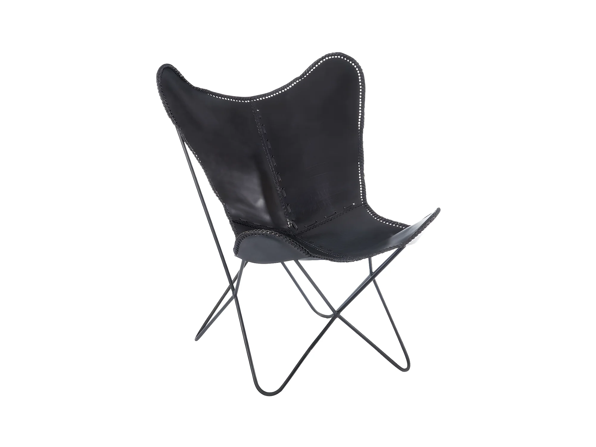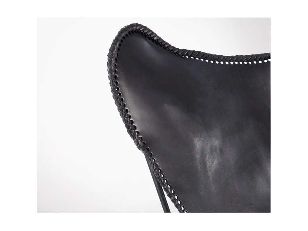 Fauteuil Design en Cuir "Papillon" 92cm Noir