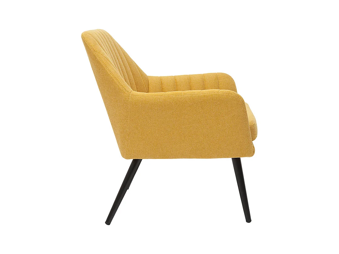Fauteuil design en tissu effet velours texturé jaune moutarde et métal noir GASTON