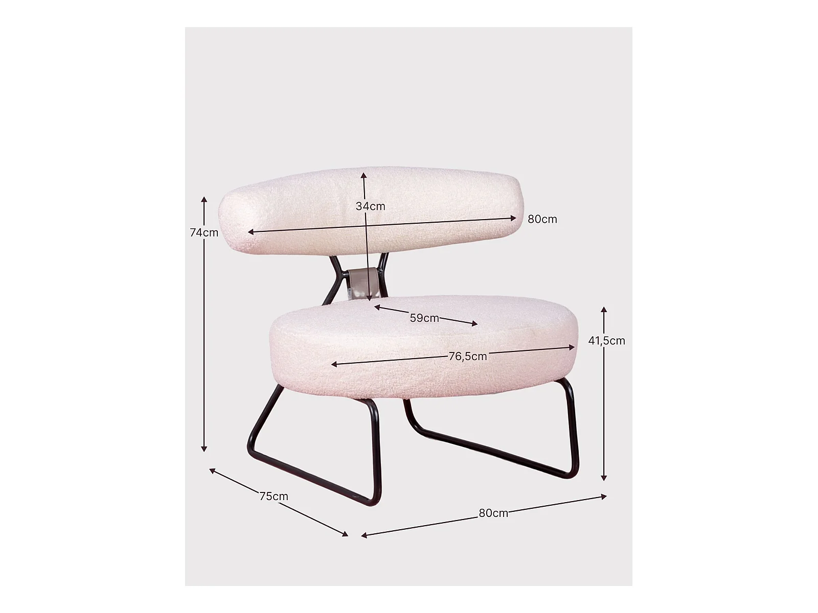 Fauteuil design recouvert de bouclé et piètement en acier - Oxford - Blanc