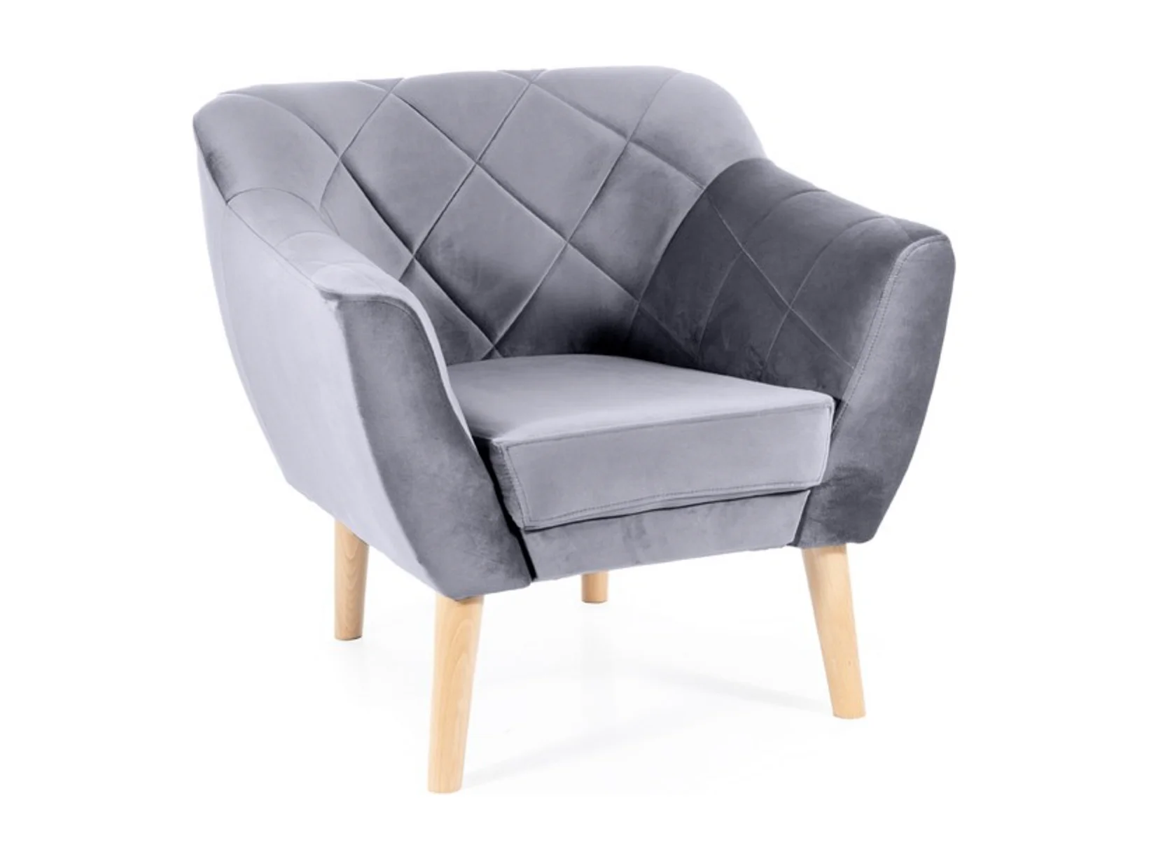 Fauteuil design velours gris & hêtre Blink