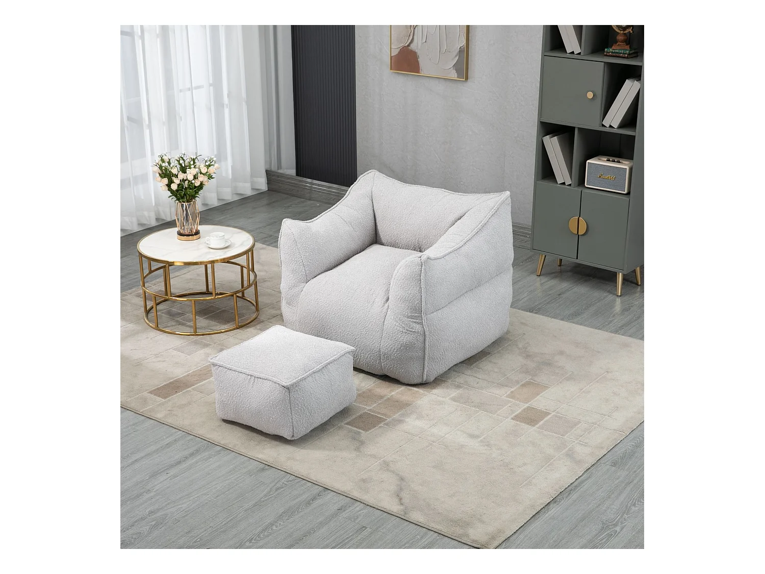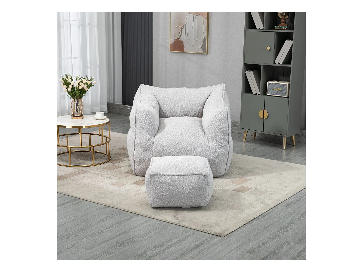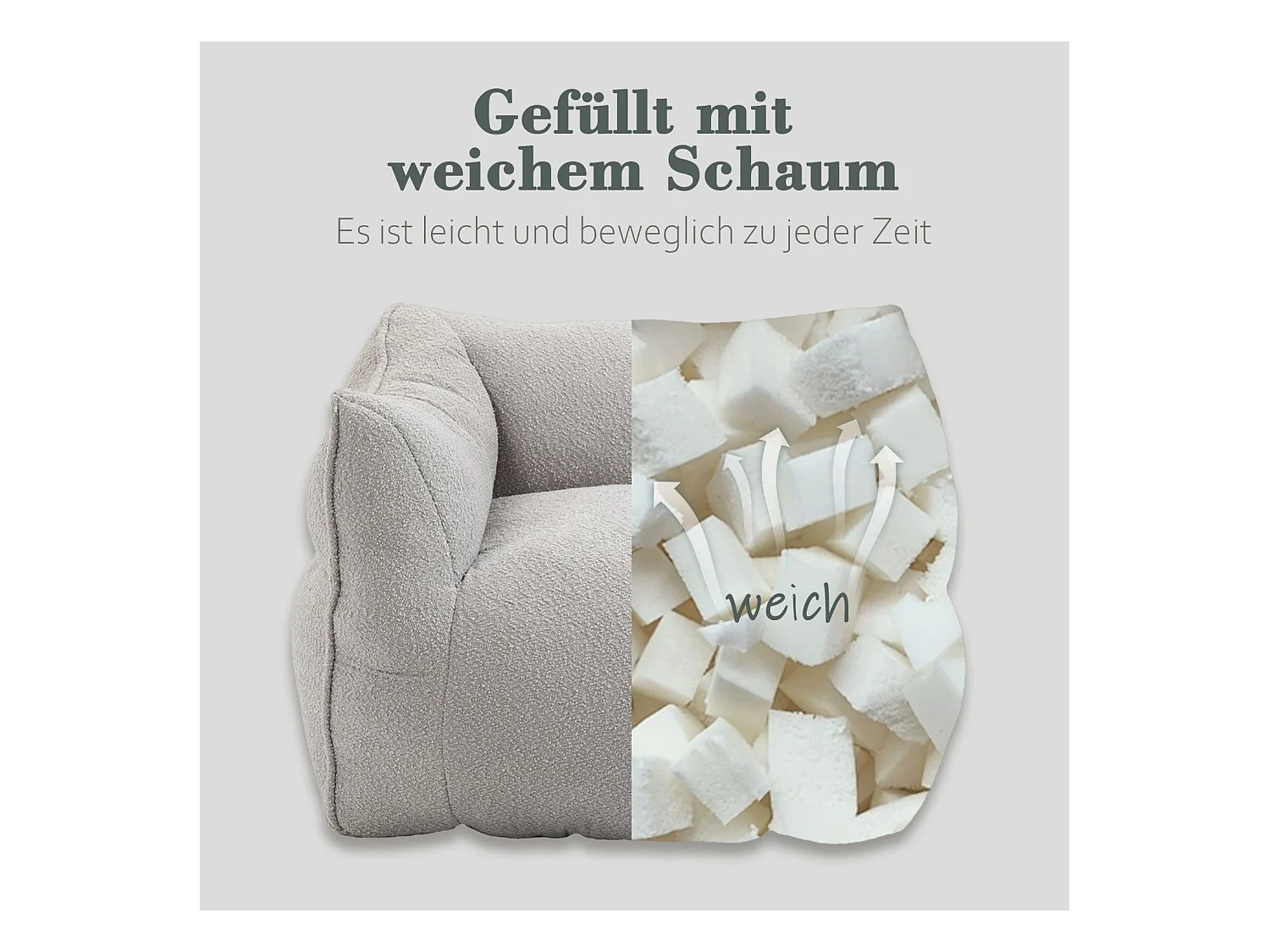 Fauteuil double confortable, chaise longue d'intérieur super douce, fauteuil moderne avec accoudoirs, gris