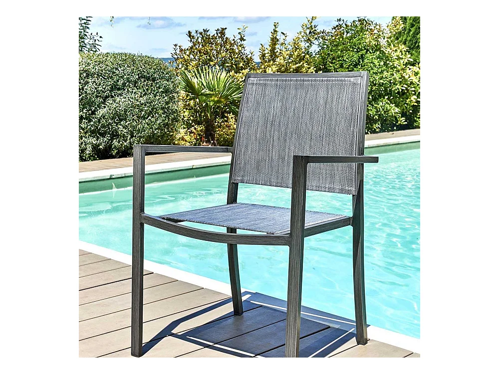 Chaise de jardin en aluminium et textilène avec accoudoirs gris