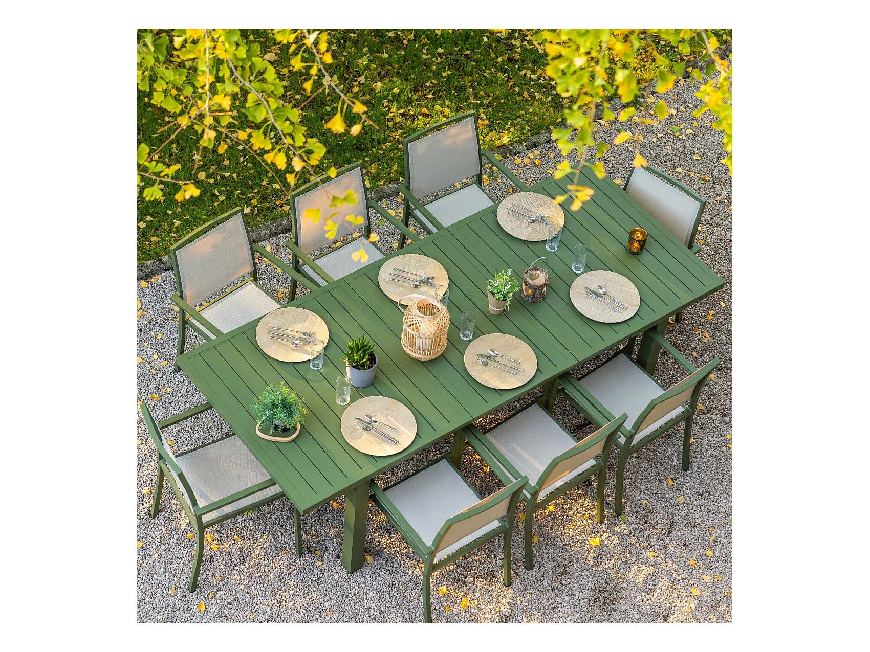 Table rectangulaire extensible Santorin 8/10 personnes en aluminium finition uni kaki - Jardiline
