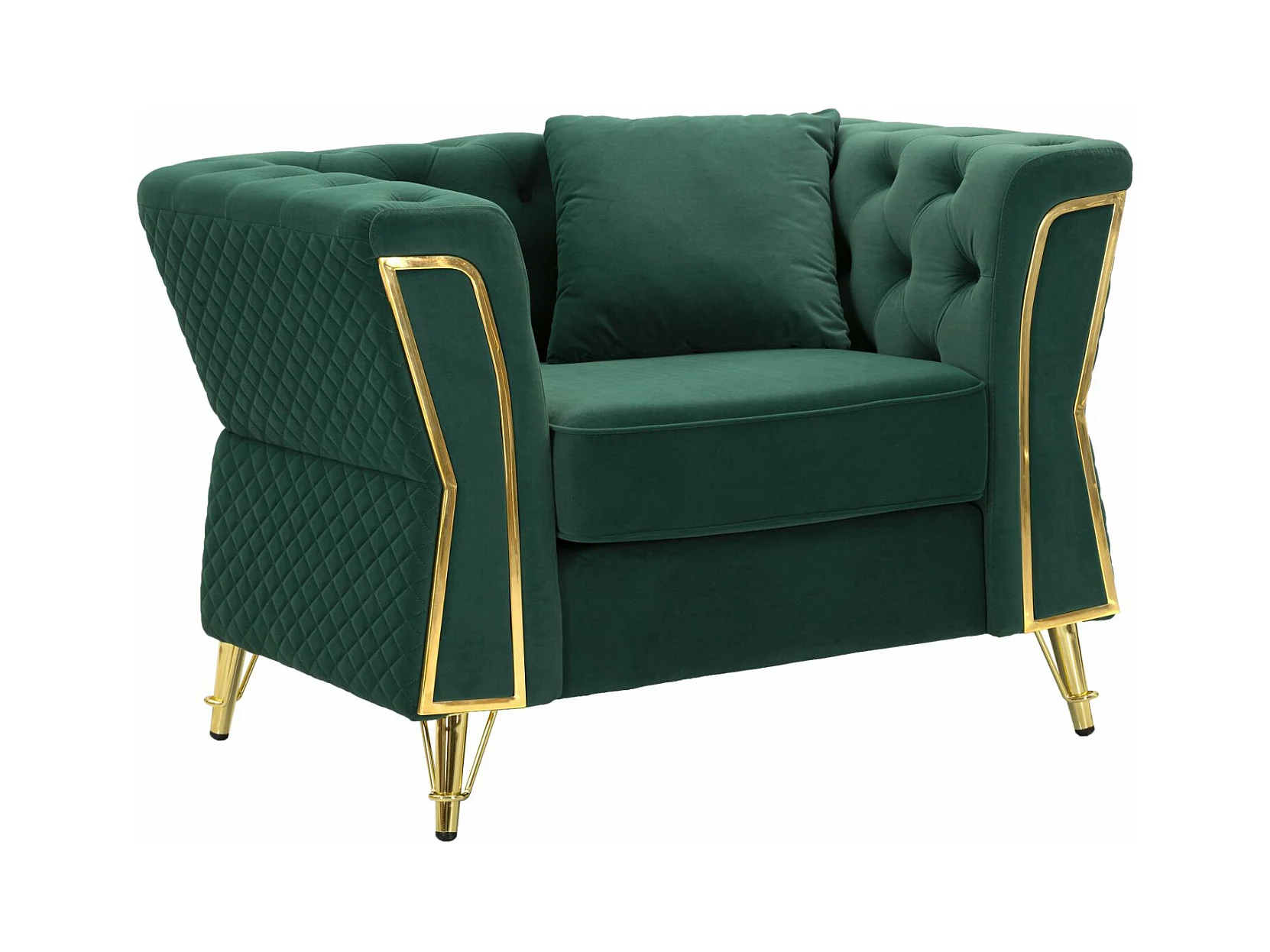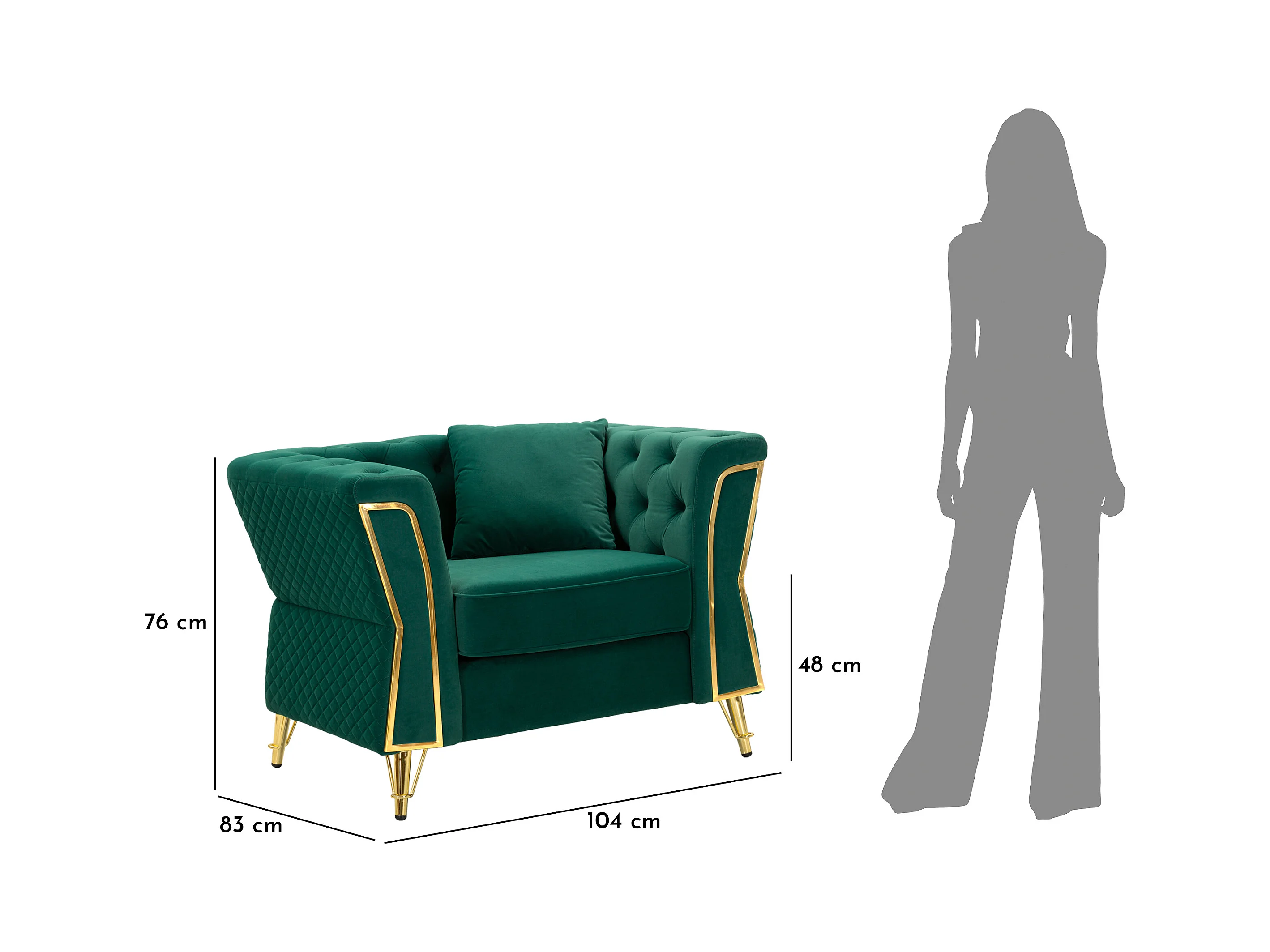 Fauteuil en Velours Capitonné "Emy" 104cm Vert